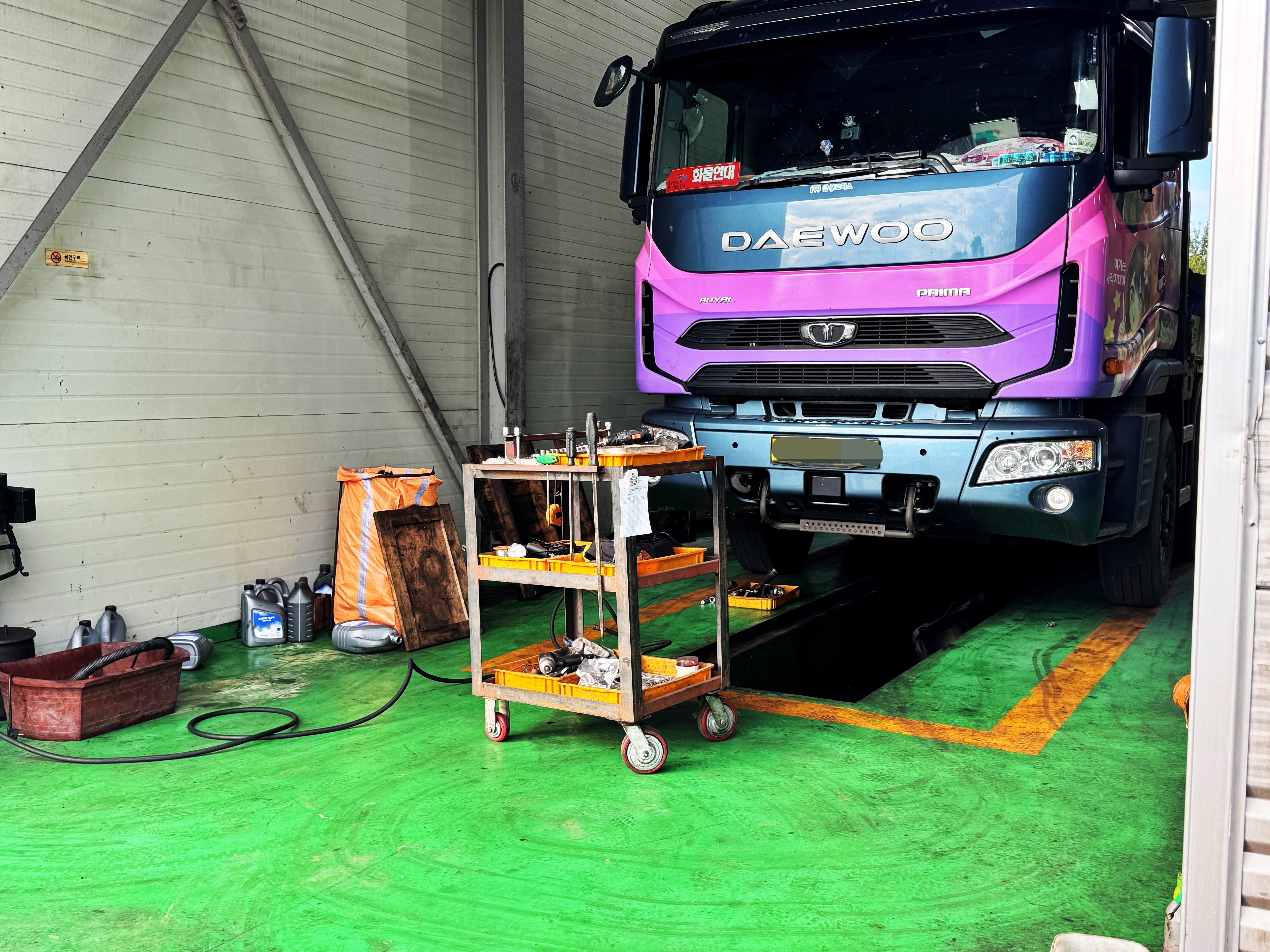 전날 오후에 6번 정비고에 입고시켰었는데 아침 일찍 와서 다시 6번 정비고로 들어갑니다.