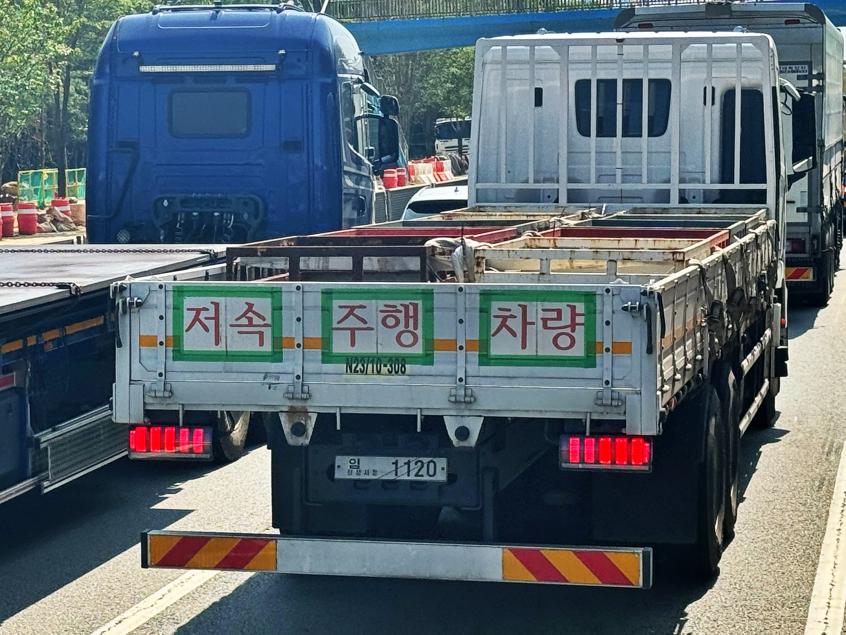 그래서 그런지 요즘 도로 위에서 위장막으로 덮인 엑시언트의 모습이 자주 보이곤 합니다.매번 반대편 차선에 지나가는 모습만 봐서 가까이에서 볼 기회는 없었는데 마침 정체구간에 함께 걸려버려 가까이에서 엑시언트의 2차 페이스리프트 모델을 볼 수 있었습니다.