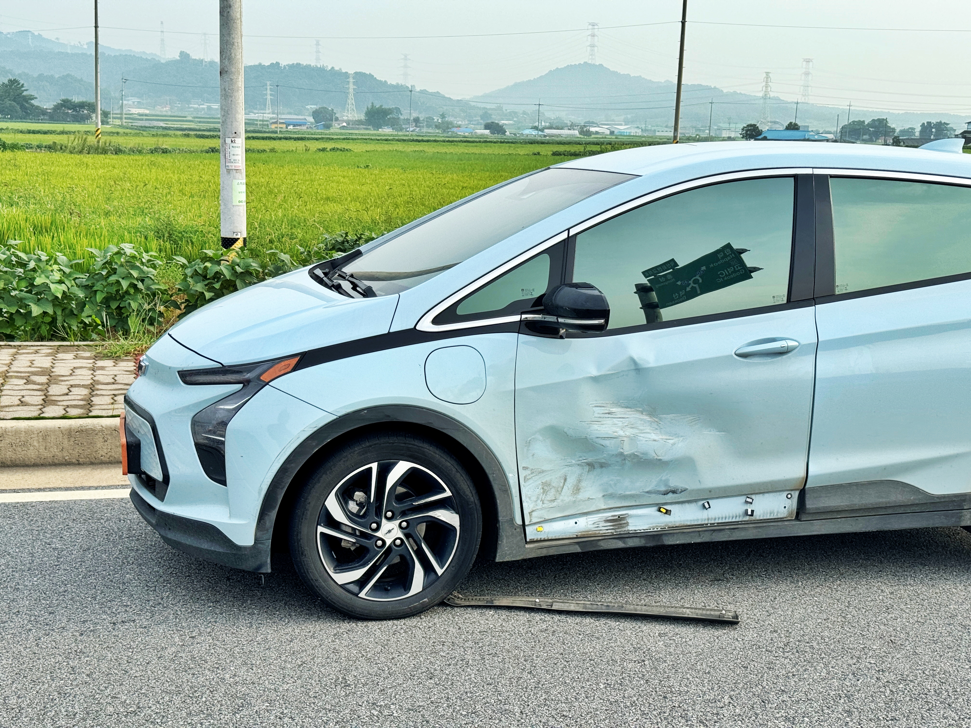 제 미국산 대우 전기차는 문짝과 휀다 휠 타이어 사이드미러 그리고 본넷까지 스쳤습니다. 자동차에 대해 아무리 잘 모른다 쳐도 고급 독일차나 일부 유명 수입차 메이커는 분명 알고 있을 테니 그런 차와 사고가 났다면 다른 태도를 보였을지 모르겠습니다만, 대우에서 마크만 바뀐 미제 고오급 쉐보레에 자기차보다 조금 큰 소형 차니 별 탈 없으리라 생각했겠지요.