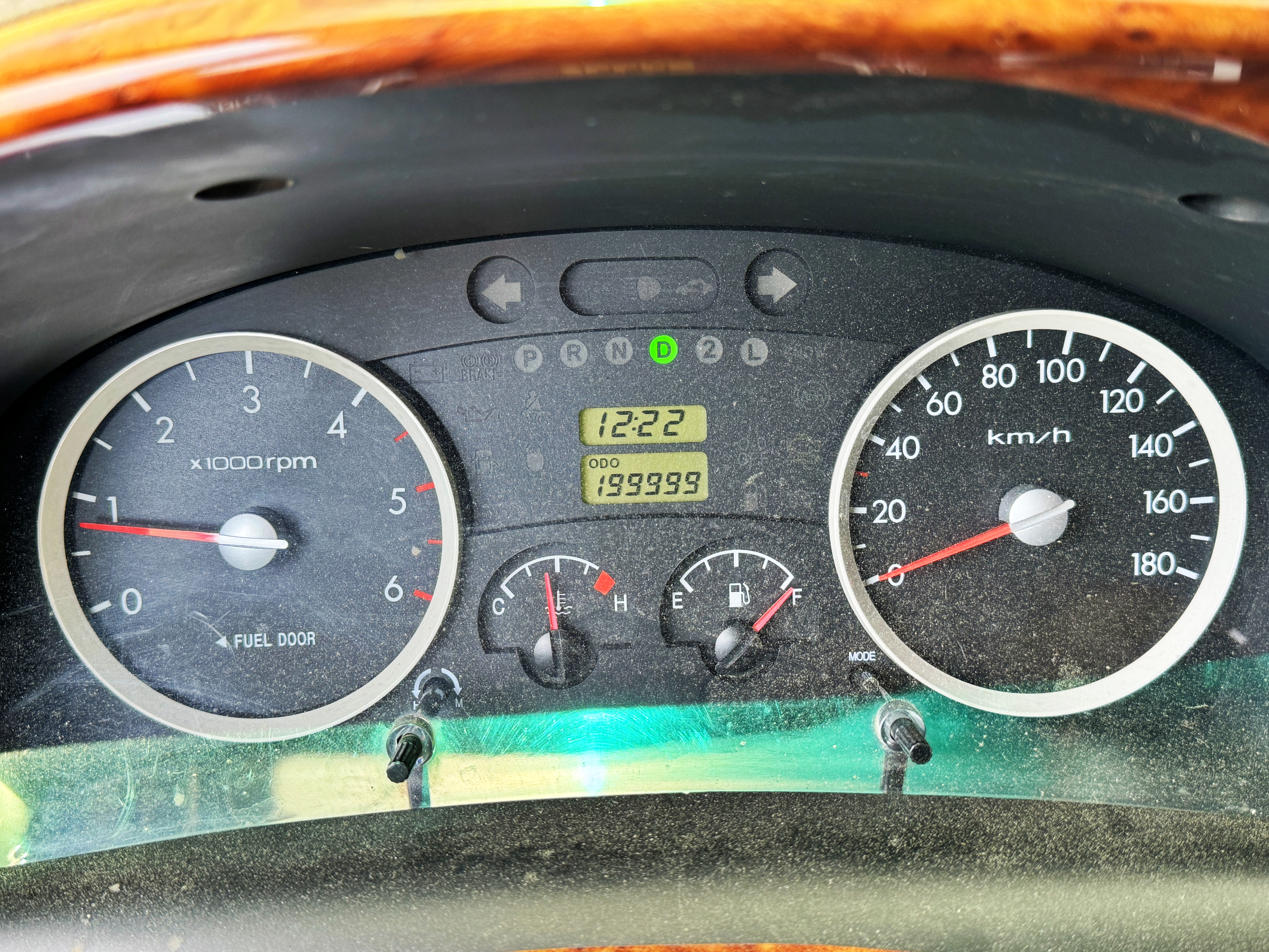 원하는 주행거리는 십만 단위 숫자가 2로 바뀌는 200000. 계기판을 주시하며 살살 주행하다 적산거리가 1km 더 올라간 시점에서 다시 차를 세우고 계기판 사진을 촬영합니다.