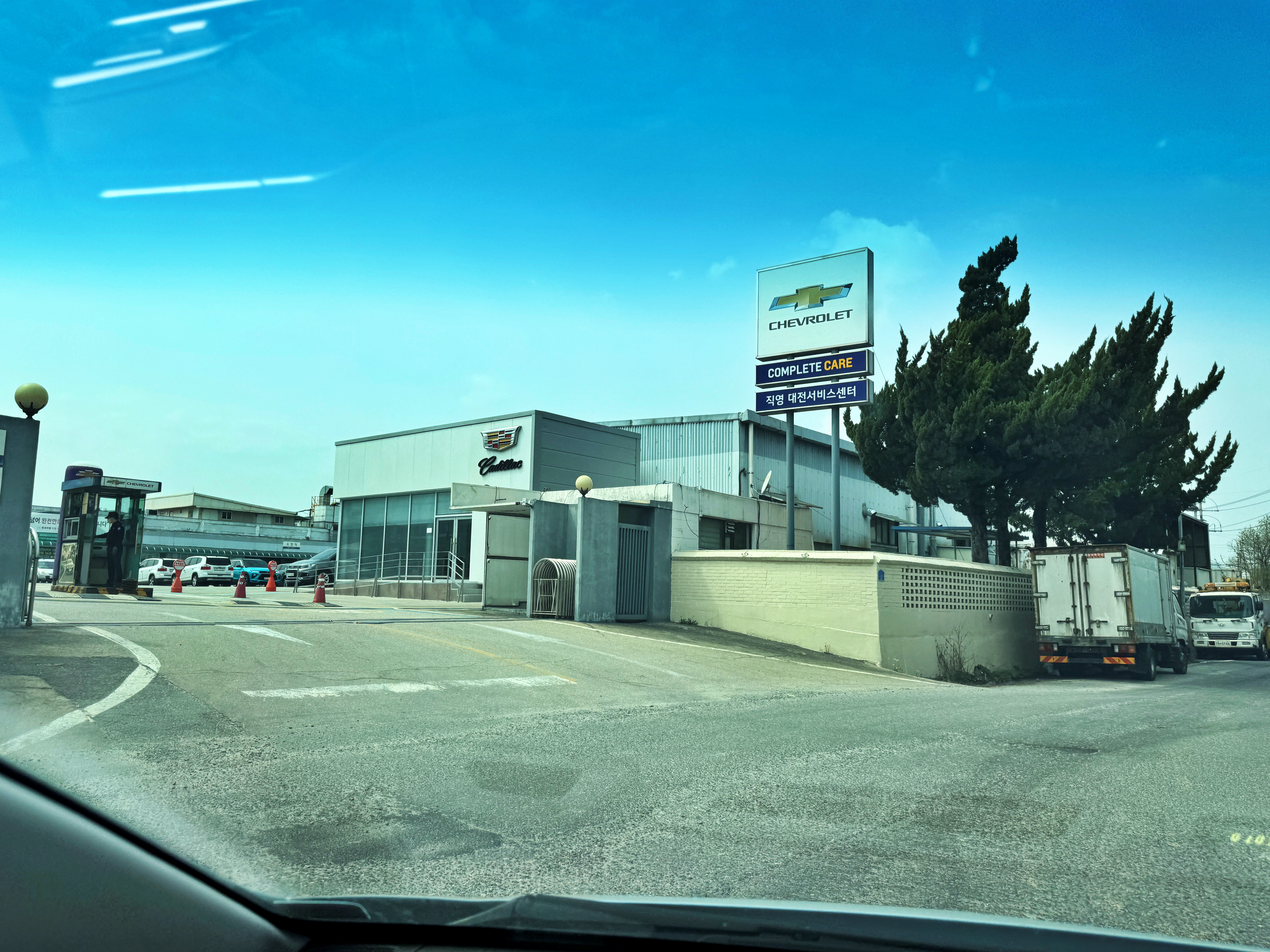 우리 쉐슬람들은 미제 고오급차니까 당연히 고급스러운 곳에 위치해야지 않겠냐 생각하지만, 오래된 공단 한복판에 자리 잡고 있습니다. 주변으로 화물차들이 주차되어 있고 동아연필 공장도 보이더군요. 미제 고오급차인 쉐보레와 미제 고오오오오오급차인 캐딜락 로고가 함께 붙어있습니다.