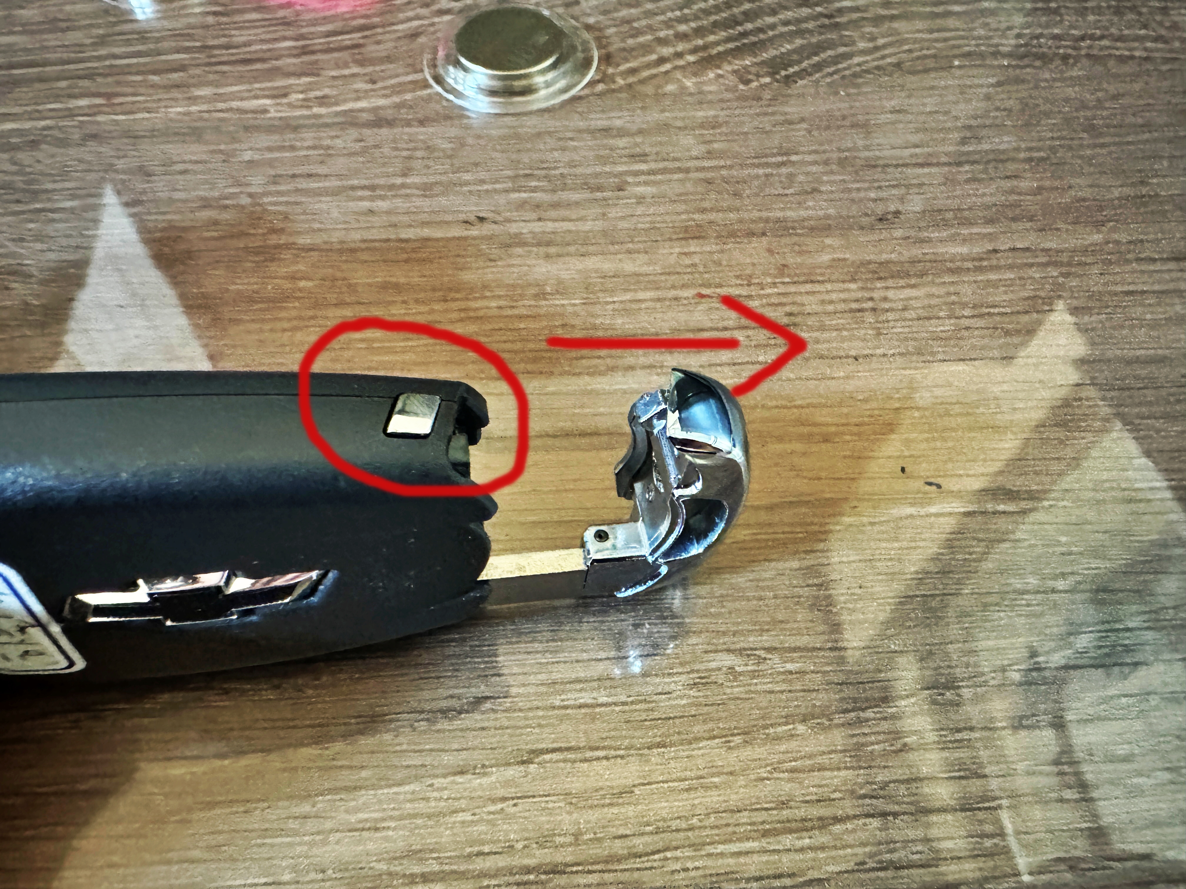 키 좌측 하단의 버튼을 눌러 예비용 금속키를 분리해줍니다.
