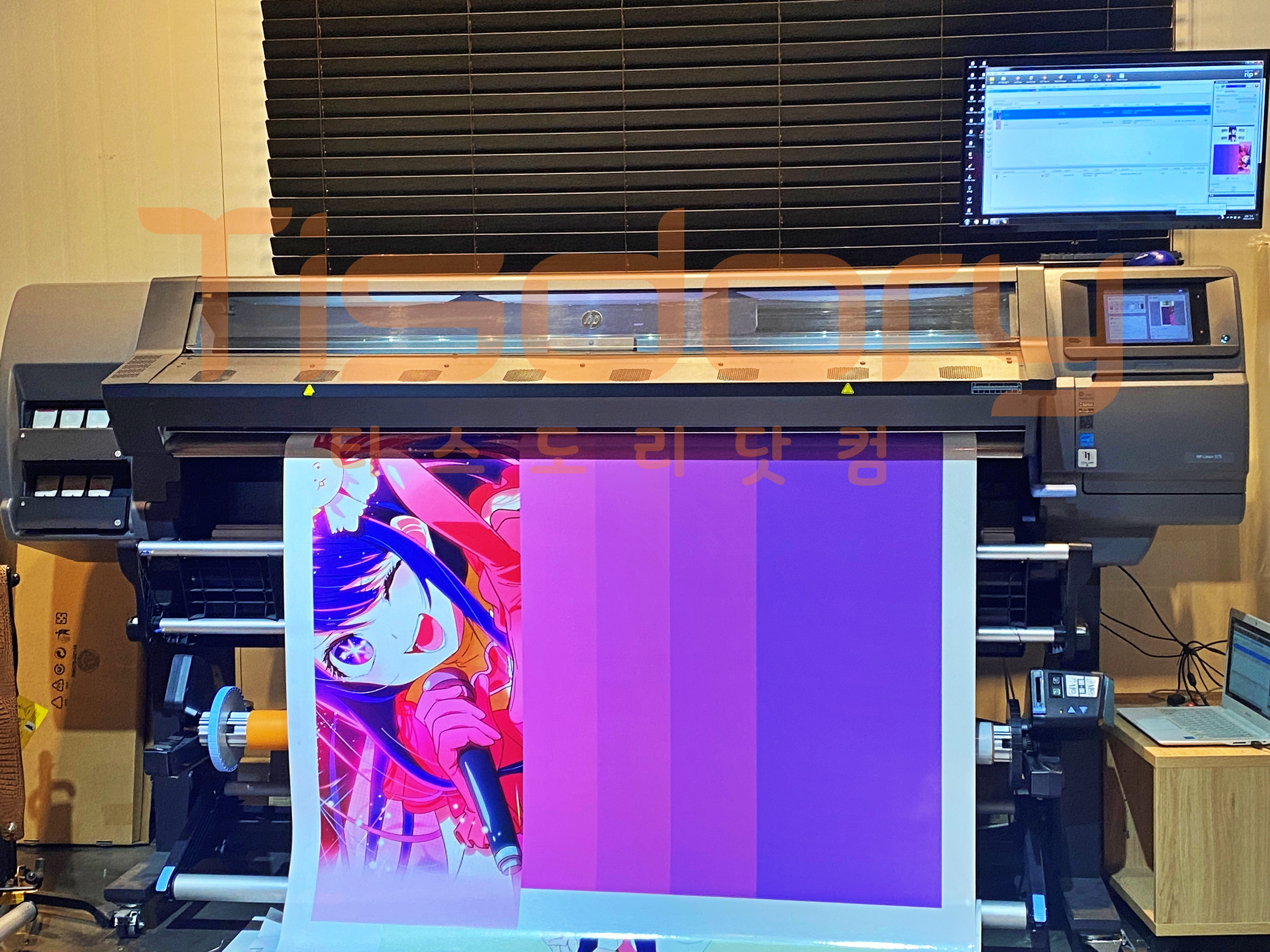적재함 벽면에 들어갈 호시노 아이와 전면부에 랩핑 할 컬러가 출력되고 있습니다.