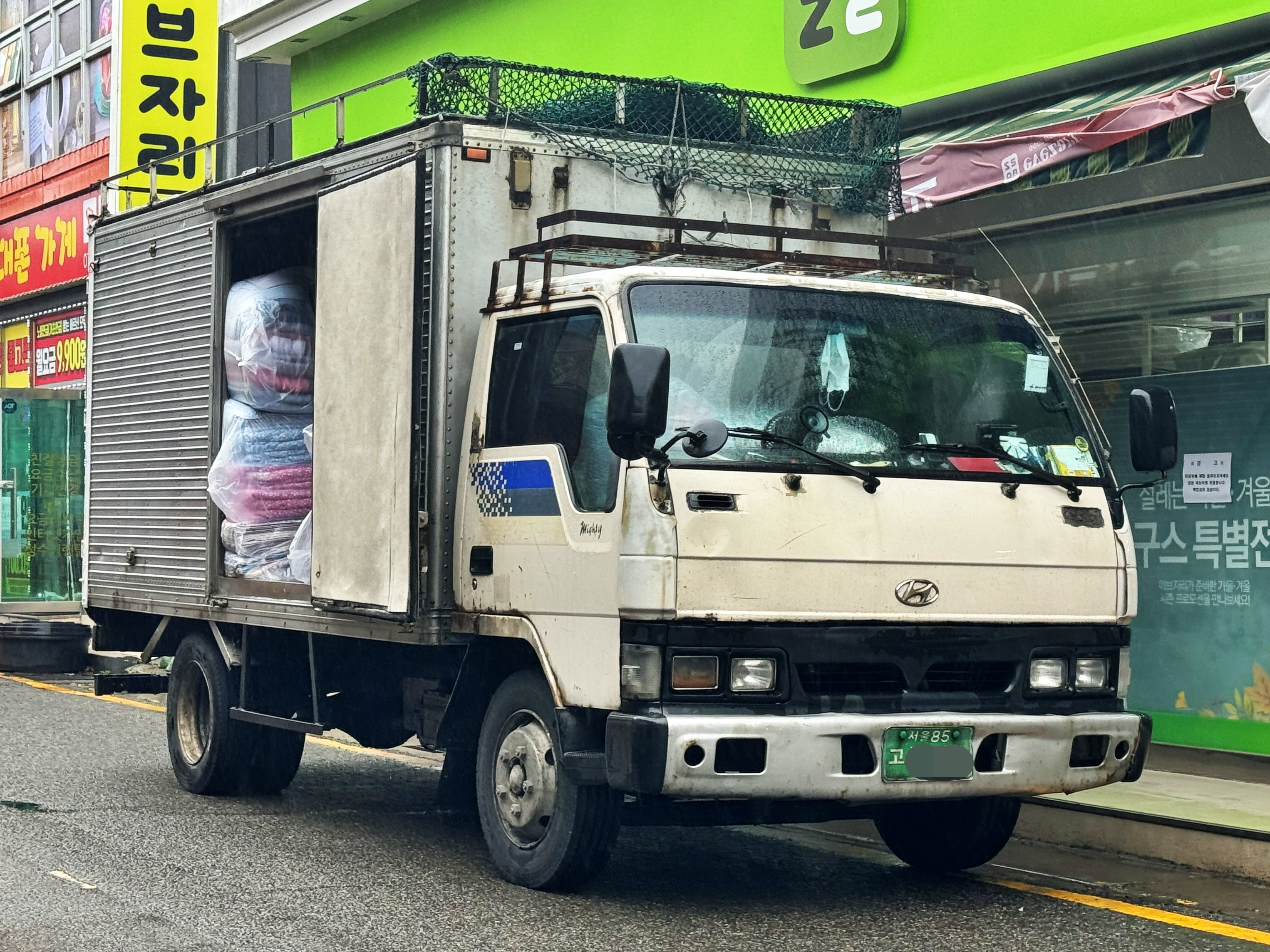 비가 내리지 않았더라면 탑 위로도 짐을 가득 올리고 다니셨으리라 생각됩니다. 탑 위로 난간대가 설치되어 있고 그물망이 있는 모습을 보면 말이죠. 앞으로도 부디 무탈히 서울을 기반으로 전국 각지를 누비며 수월하게 임무를 수행했으면 좋겠습니다.