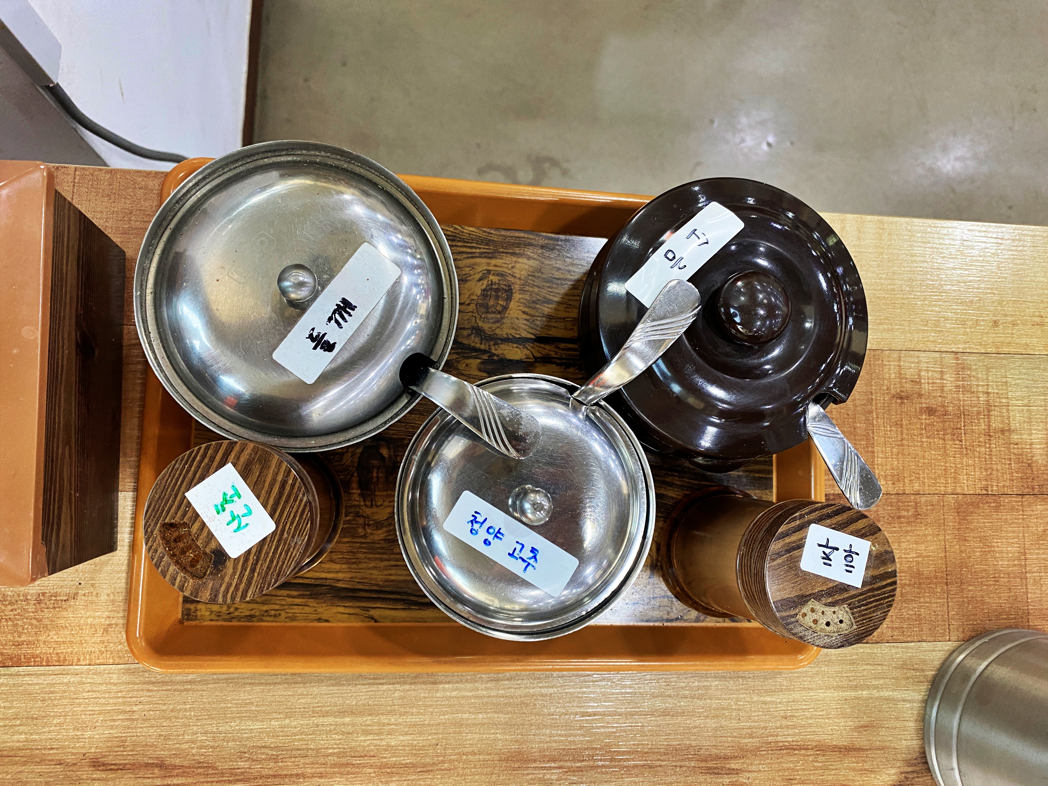 셀프바에서 가져온 밑반찬들로 세팅을 합니다.