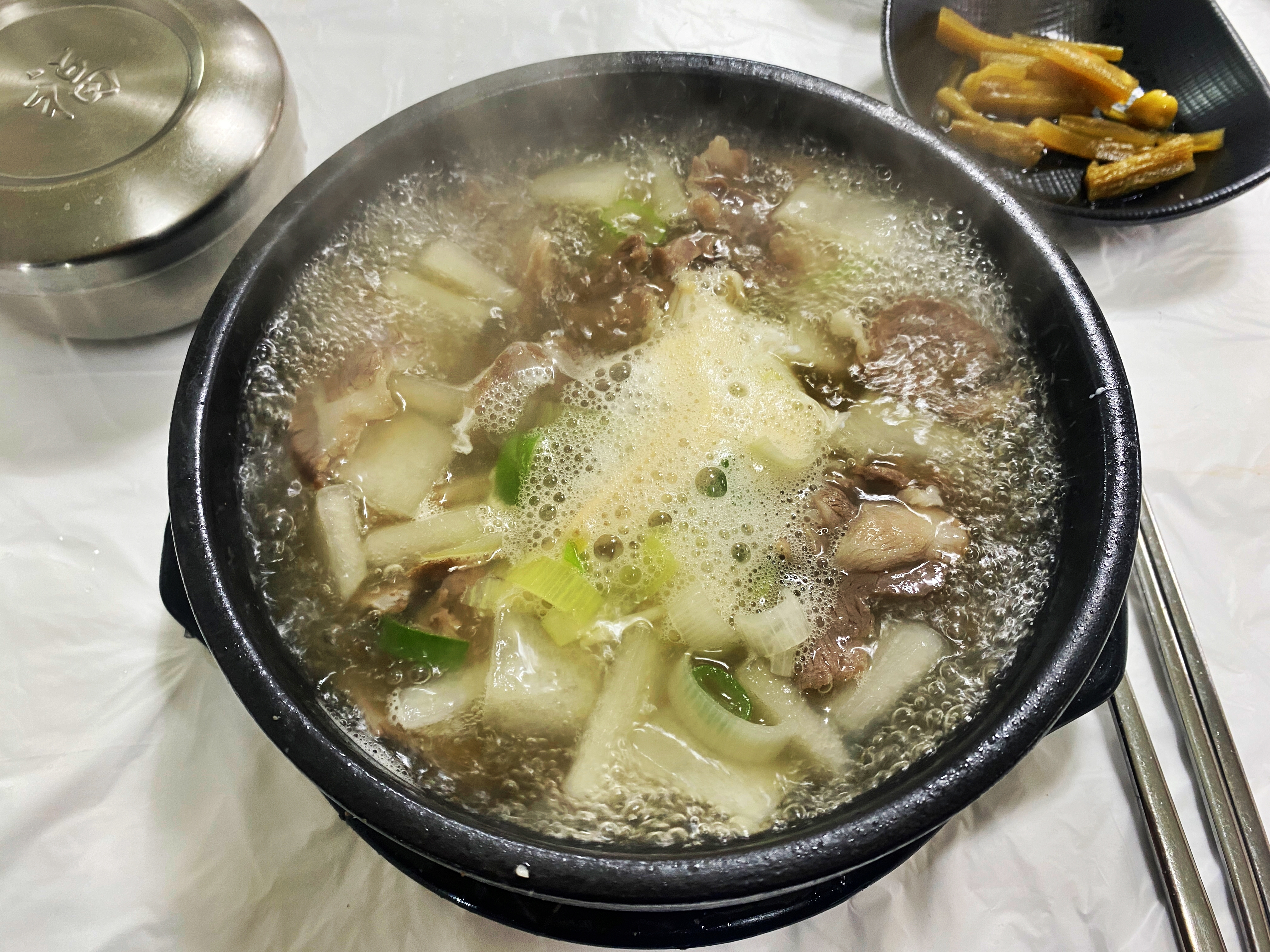 저는 소갈비보다는 뒷고기 해장국이 더 취향에 맞는 느낌입니다. 당일 오전에 삶은 소고기고 조리과정이나 다른 손님들이 비슷하게 한 얘기는 없었다고 하는데 소고기 특유의 냄새가 좀 올라오더군요. 개인적인 취향이라 생각하고 보면 나쁘지는 않았습니다.