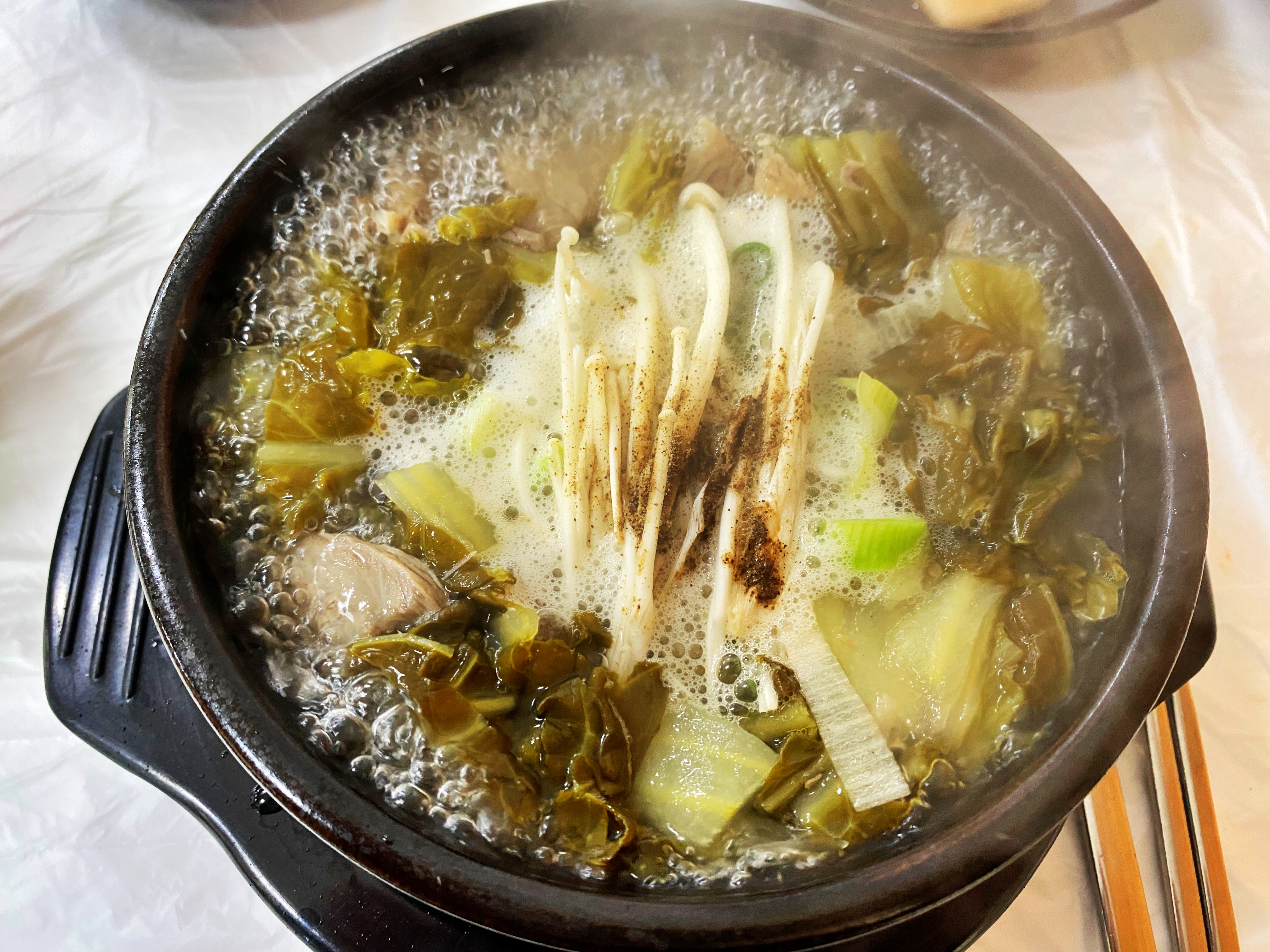해장국이 나오면 팔팔 끓는 뚝배기에 계란을 풀어 넣어 먹으면 된다고 합니다. 생전 처음 듣는 해장국 메뉴에 콩나물국밥도 아닌데 웬 계란일까 싶어 이 생전 처음 들어보는 해장국에 대한 궁금증만 증폭되었습니다.