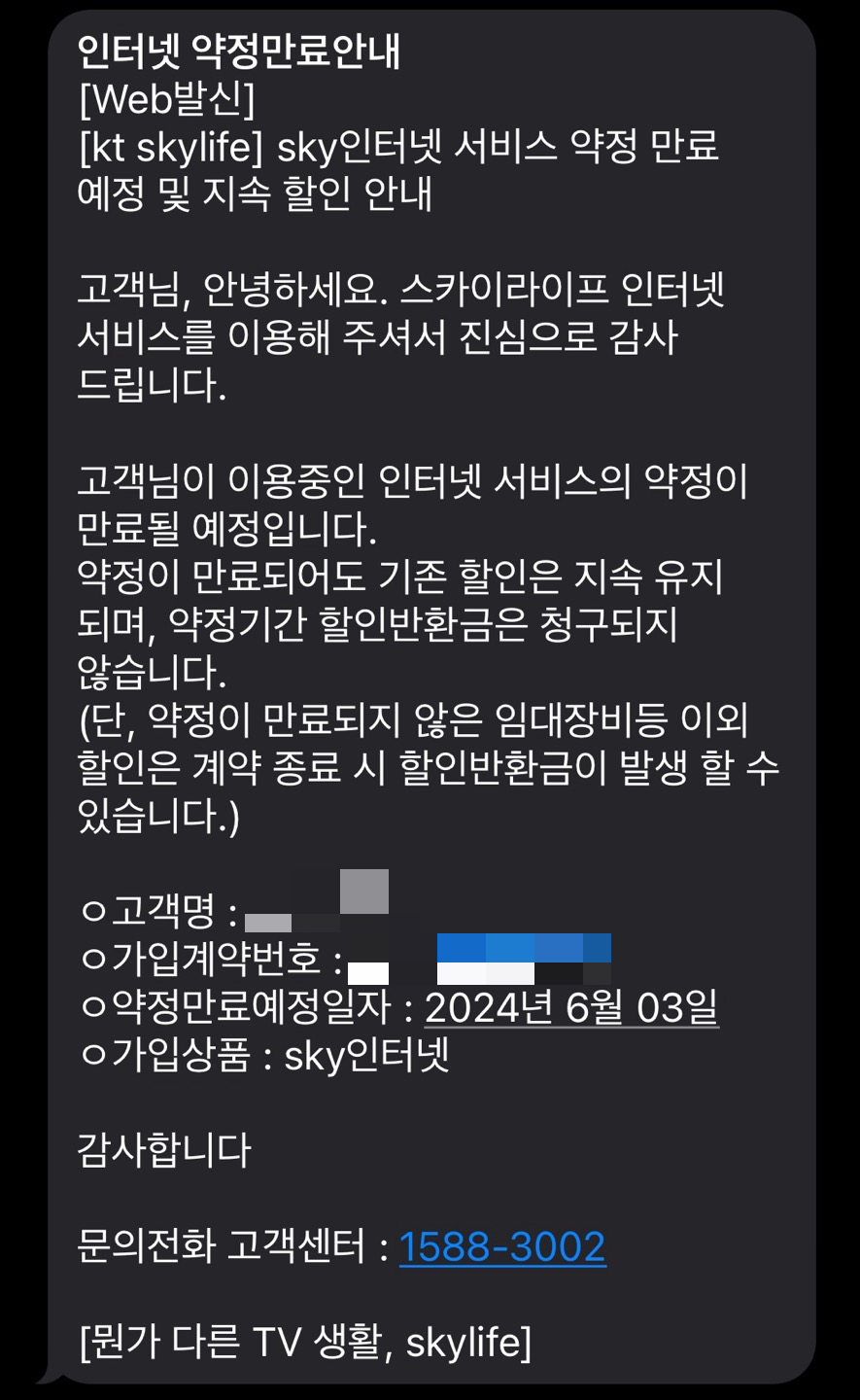| KT 스카이라이프 재약정 (TV+인터넷 결합상품) (0) | 2024.05.28 |