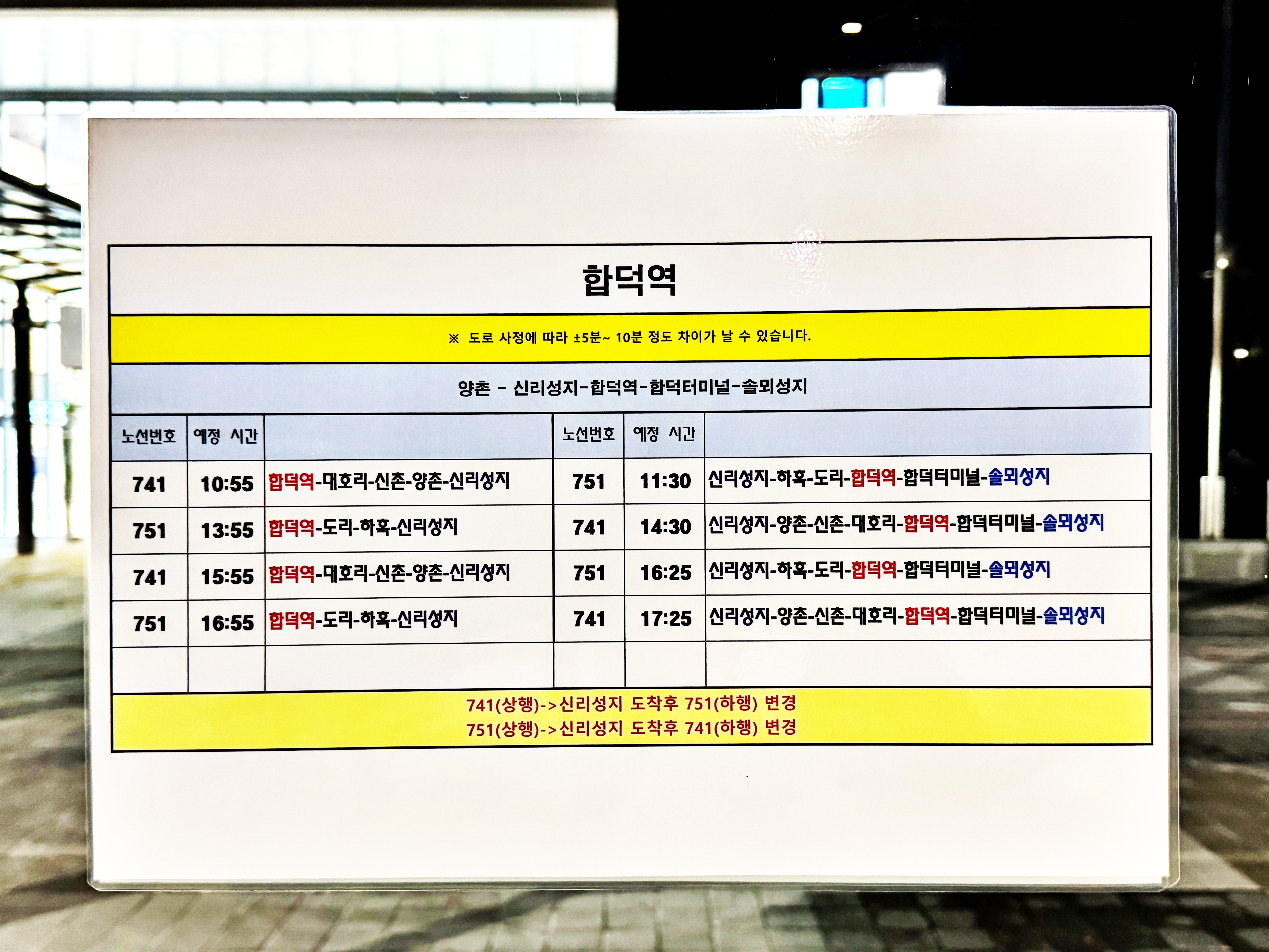양촌 하흑으로 가는 노선은 신리성지를 경유하게 되었고, 신리성지를 기점으로 합덕터미널로 나오는 노선은 솔뫼성지까지 거치게 되었습니다. 솔뫼성지까지 갔다 다시 합덕터미널로 회차를 하는지는 모르겠지만, 합덕역 개통으로 신리성지에서 솔뫼성지까지 환승 없이 한 번에 갈 수 있게 되었습니다.