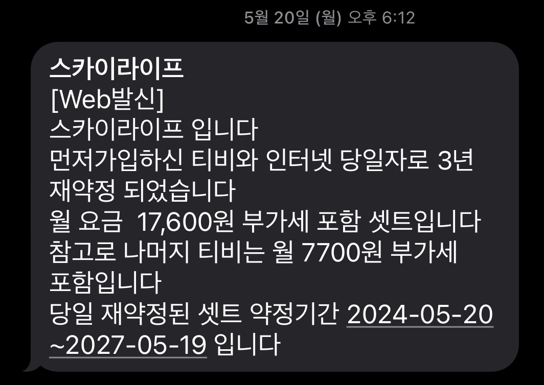 그런 단점은 어쩌다 한 번 수준이고 그냥저냥 잘 쓰고 있었습니다만, 약정 만료 안내 문자가 왔습니다.