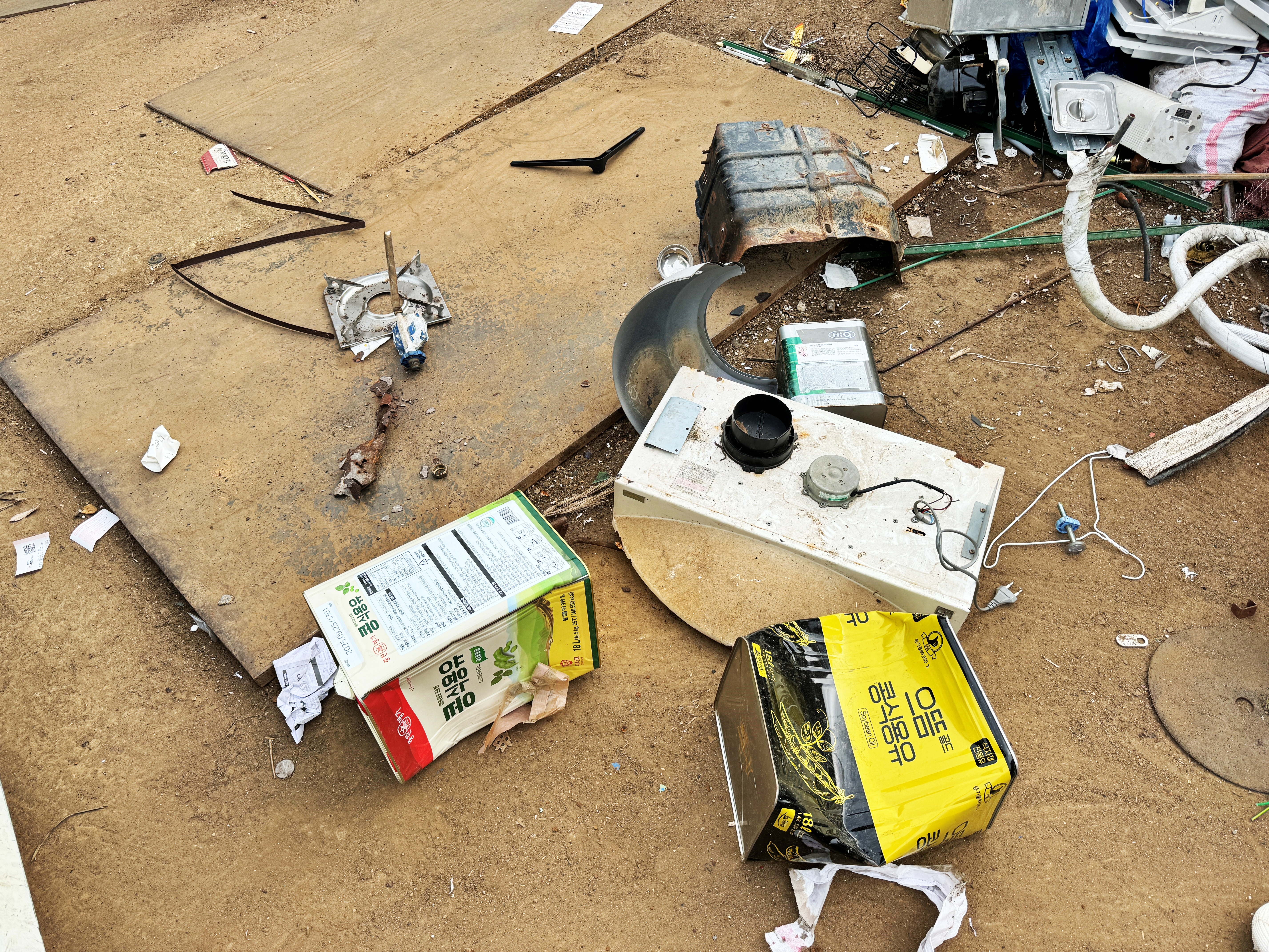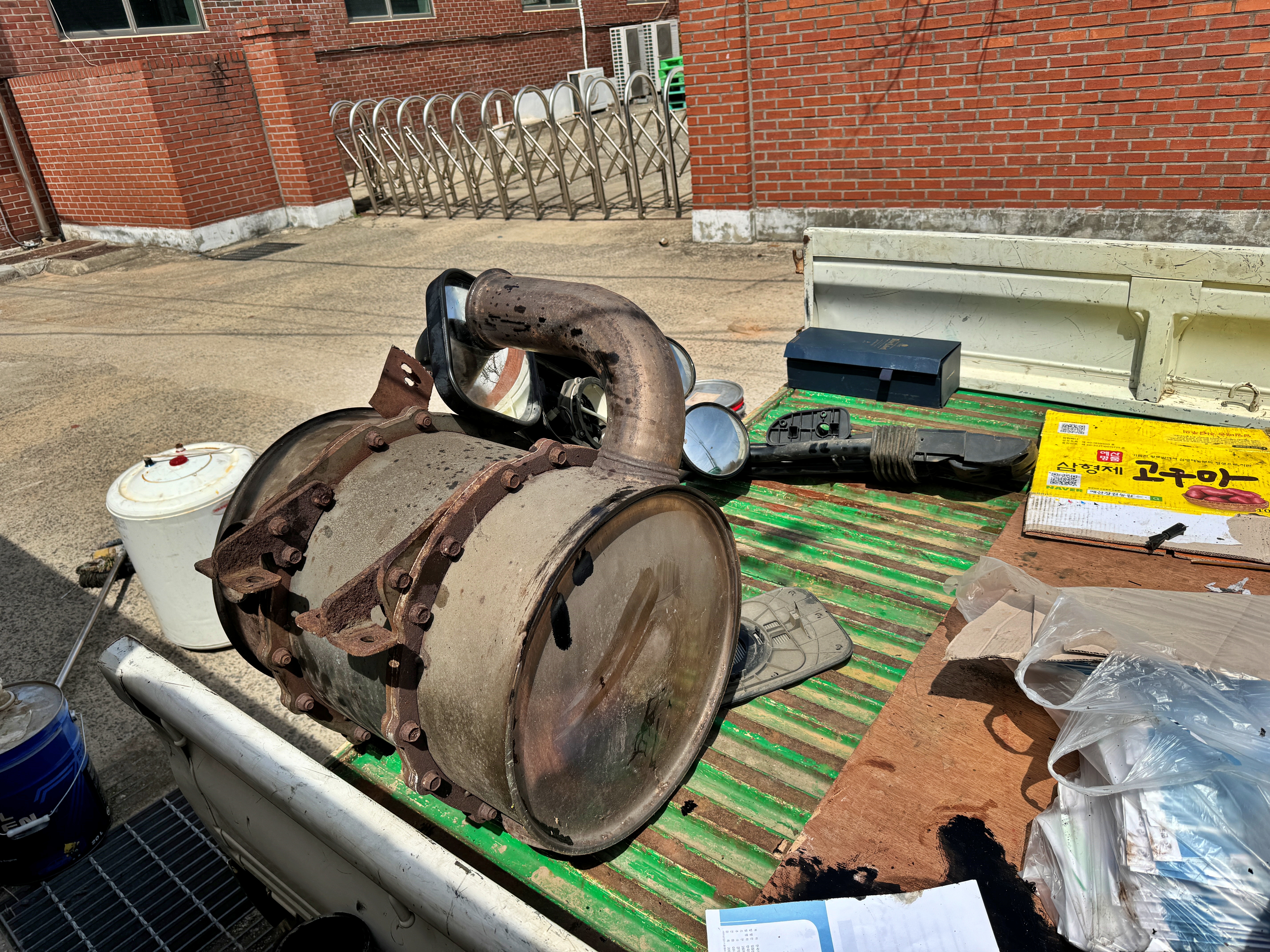 버스에서 탈거된 부품들도 있고, 고장난 온수기같은 잡동사니도 섞여있습니다. 이걸 받아서 내려온 뒤 다음날 분류작업을 진행했습니다. 이날 가져온 물건들과 다음날 해체했던 에어컨에서 나온 부속물들을 한 번에 가져다 팔았습니다.