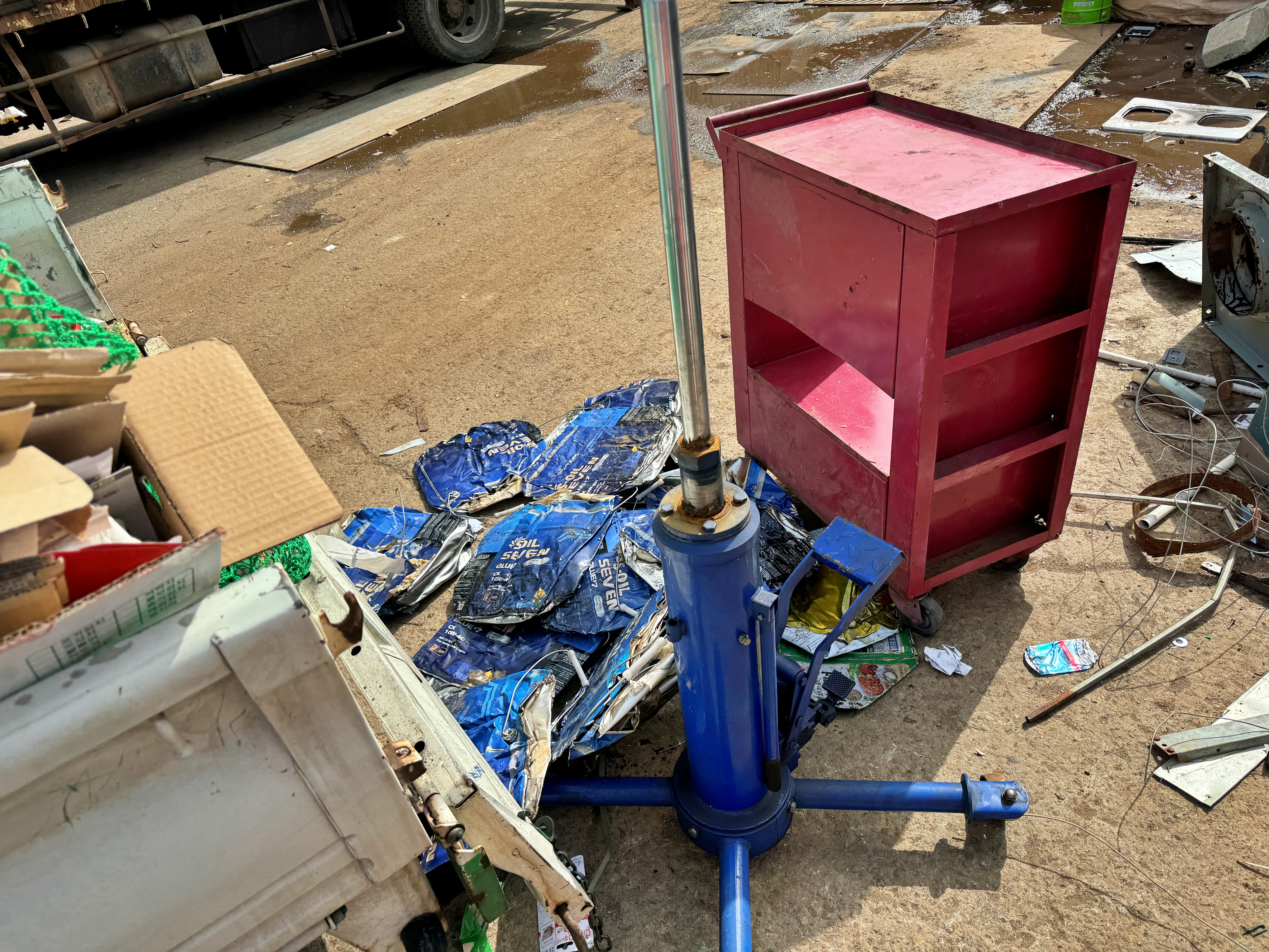 미션작기와 공구통 기타 잡다한 고철과 알루미늄캔이 실려있습니다.