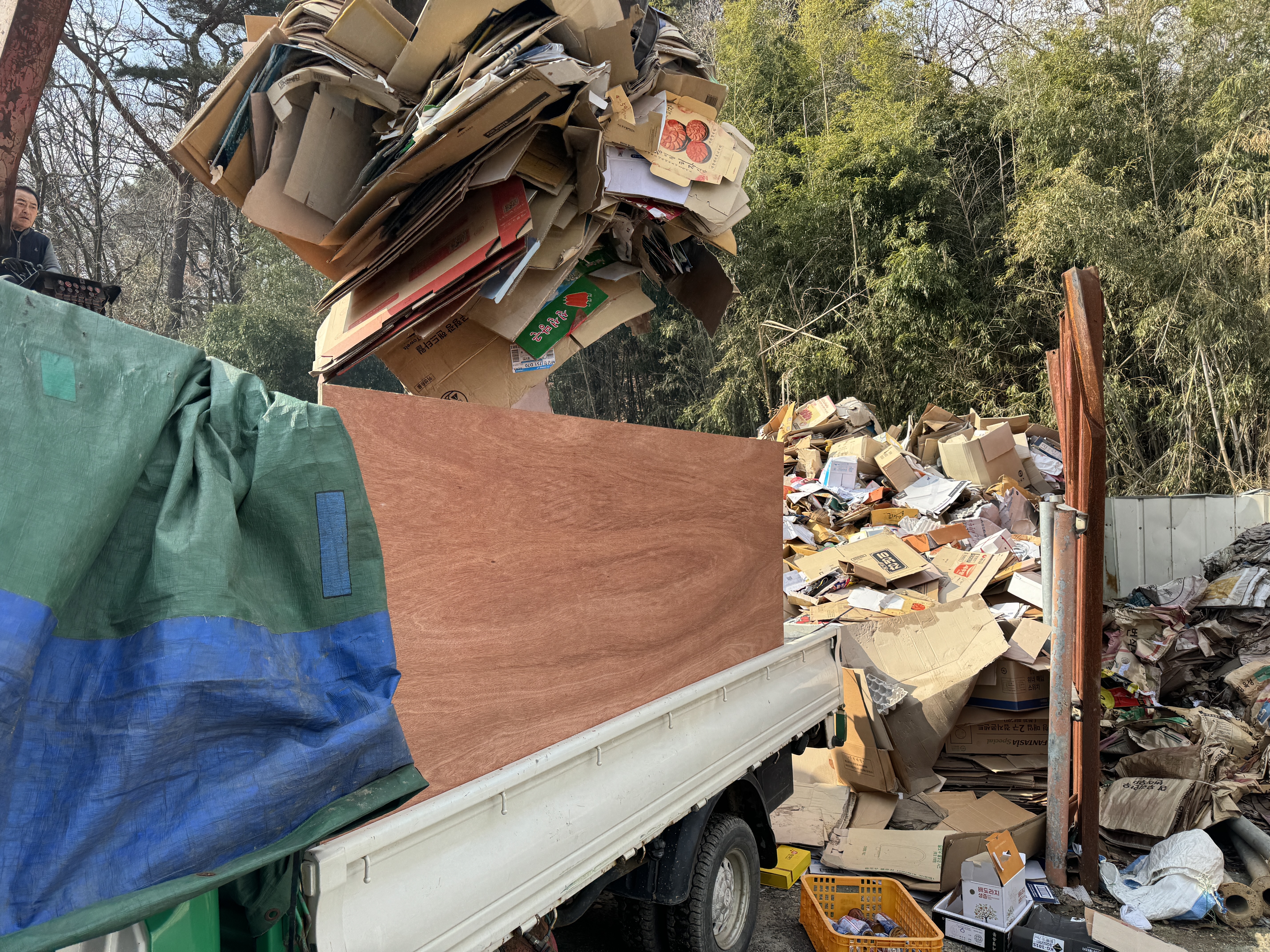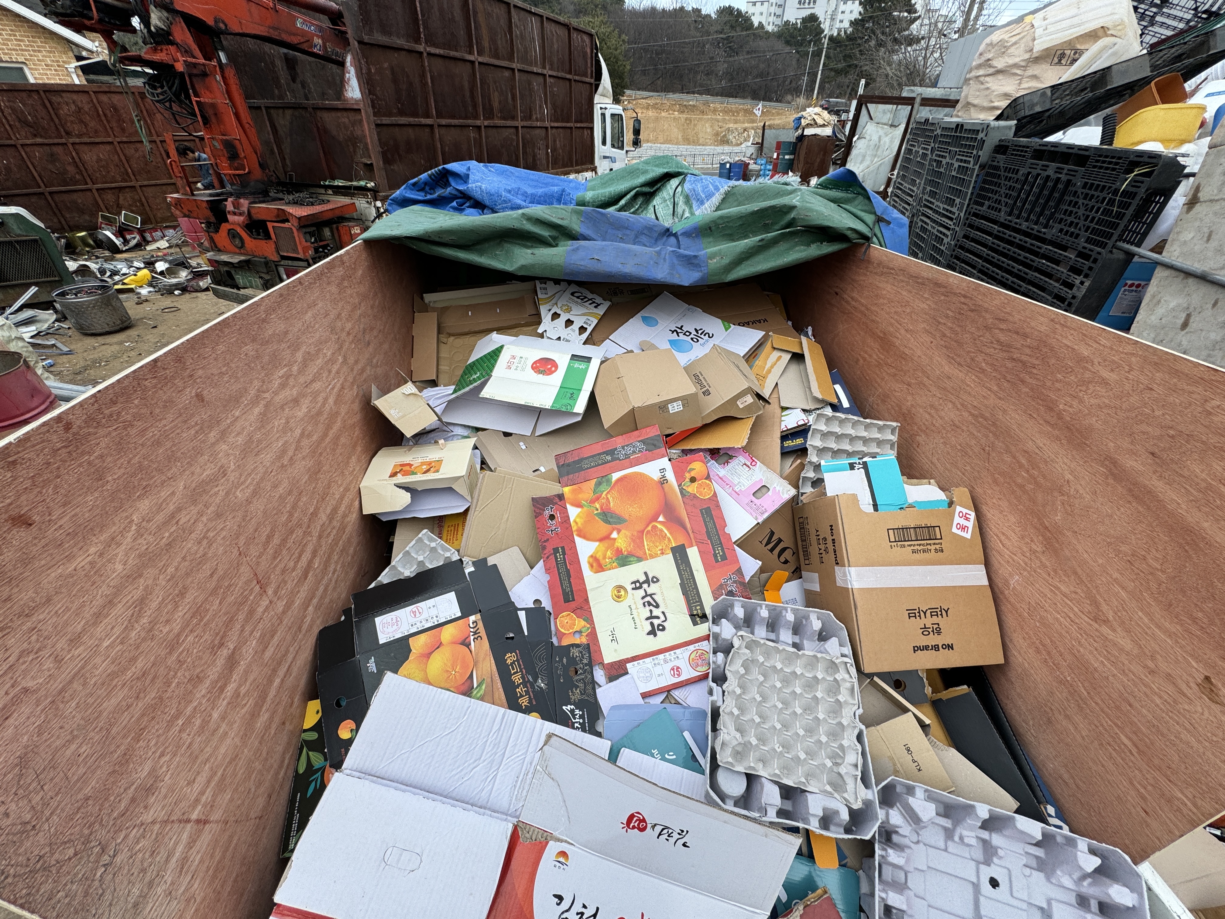 설 연휴에 배출된 폐지들을 모아 다른 고물상으로 가져갔는데 여긴 그리 까다롭지도 않네요. 직전에 갔던 고물상은 백상지도 아니고 박스 받는데 뭐 가리는것도 많고 하나하나 깔 궁리만 하더니만 여기는 그런건 없네요. 종이 사이에 섞인 이물질도 크게 상관 없다고 고르지 말고 편하게 내리랍니다.