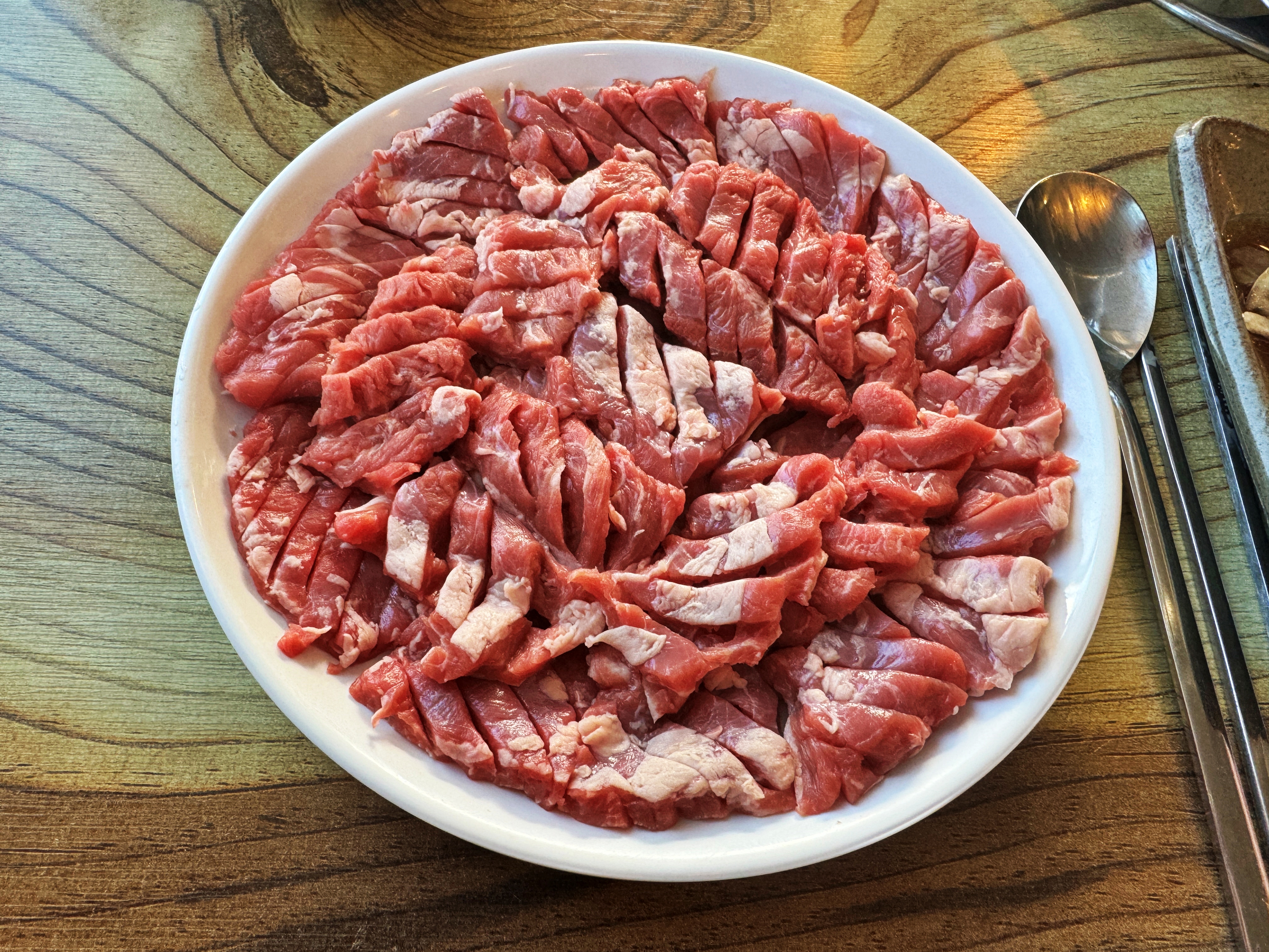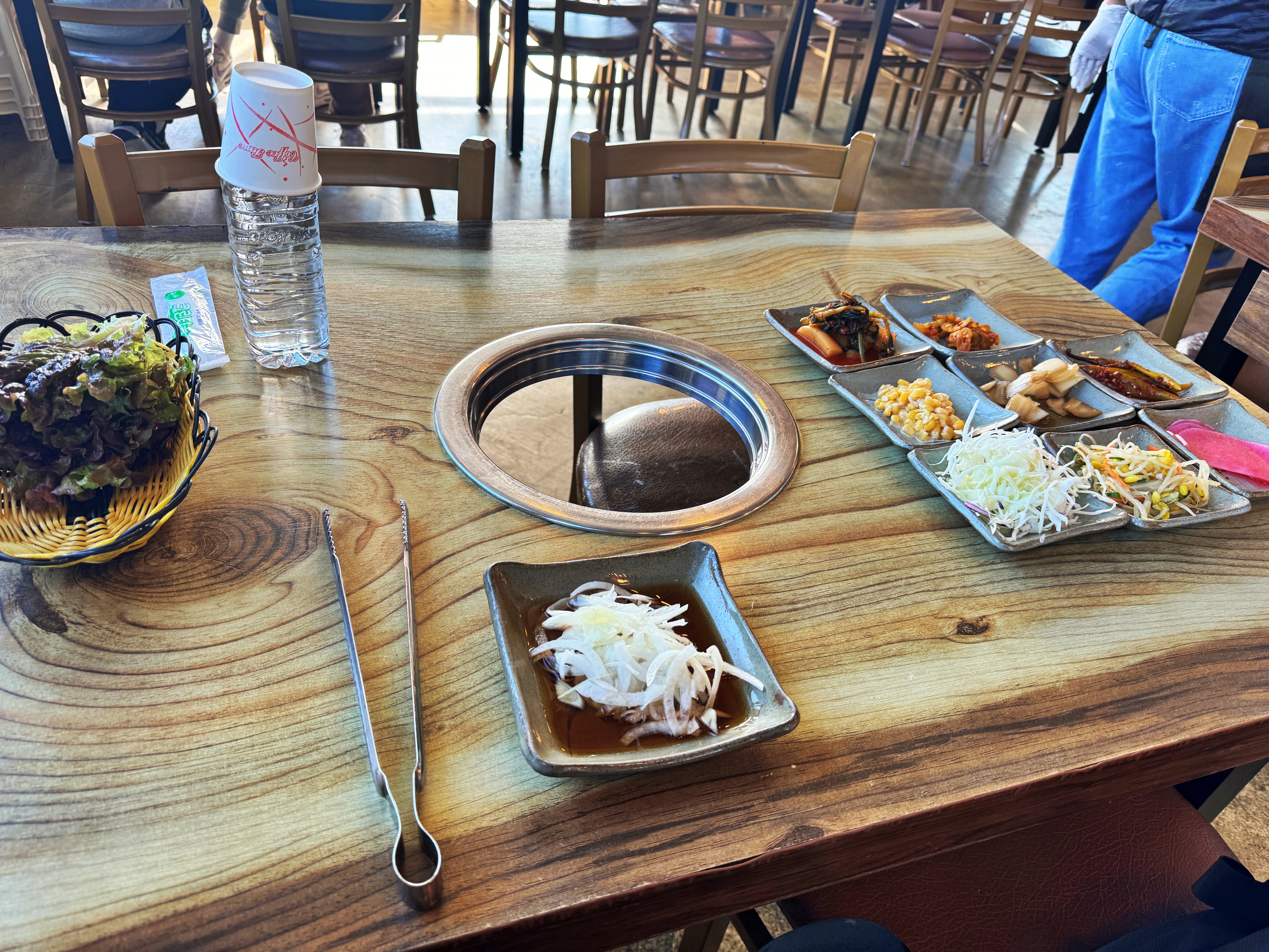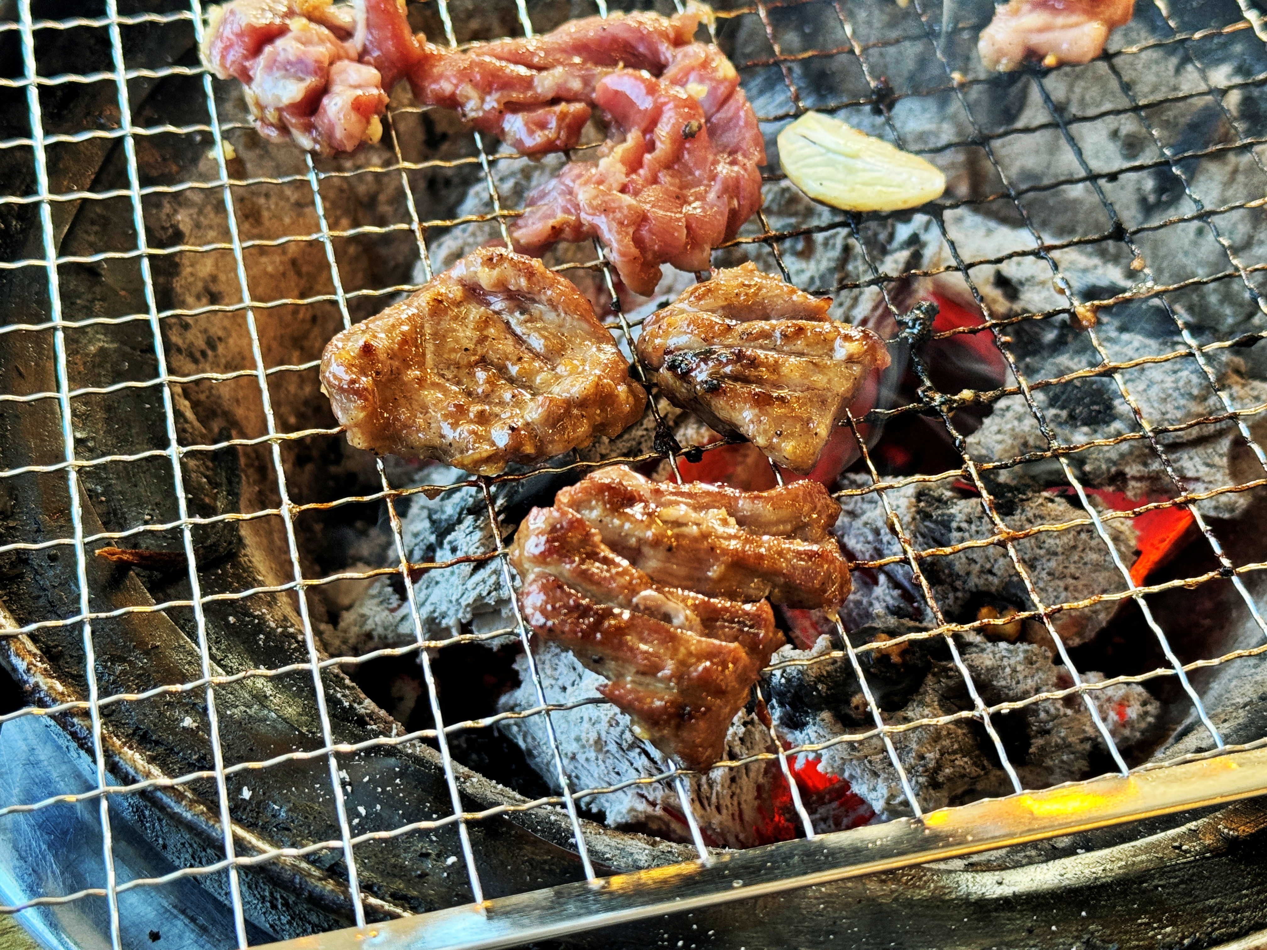 주변 테이블엔 2~4인 이상 앉아있습니다만, 고독한 도태남은 고독을 즐기며 혼자 고기를 굽고 있습니다.