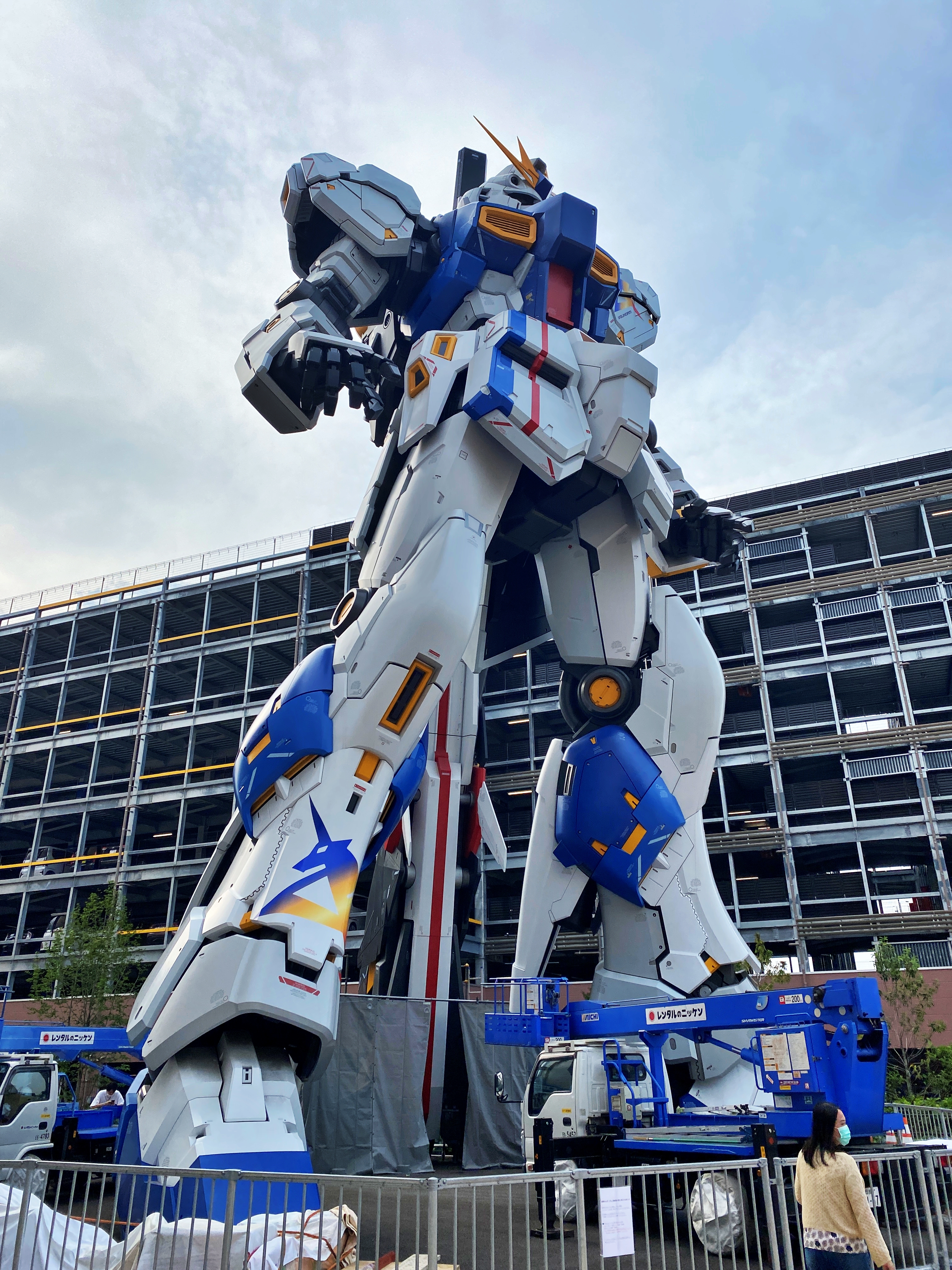 보수공사가 진행중이지만 많은 관광객들이 건담 앞에서 사진을 찍고 있습니다.