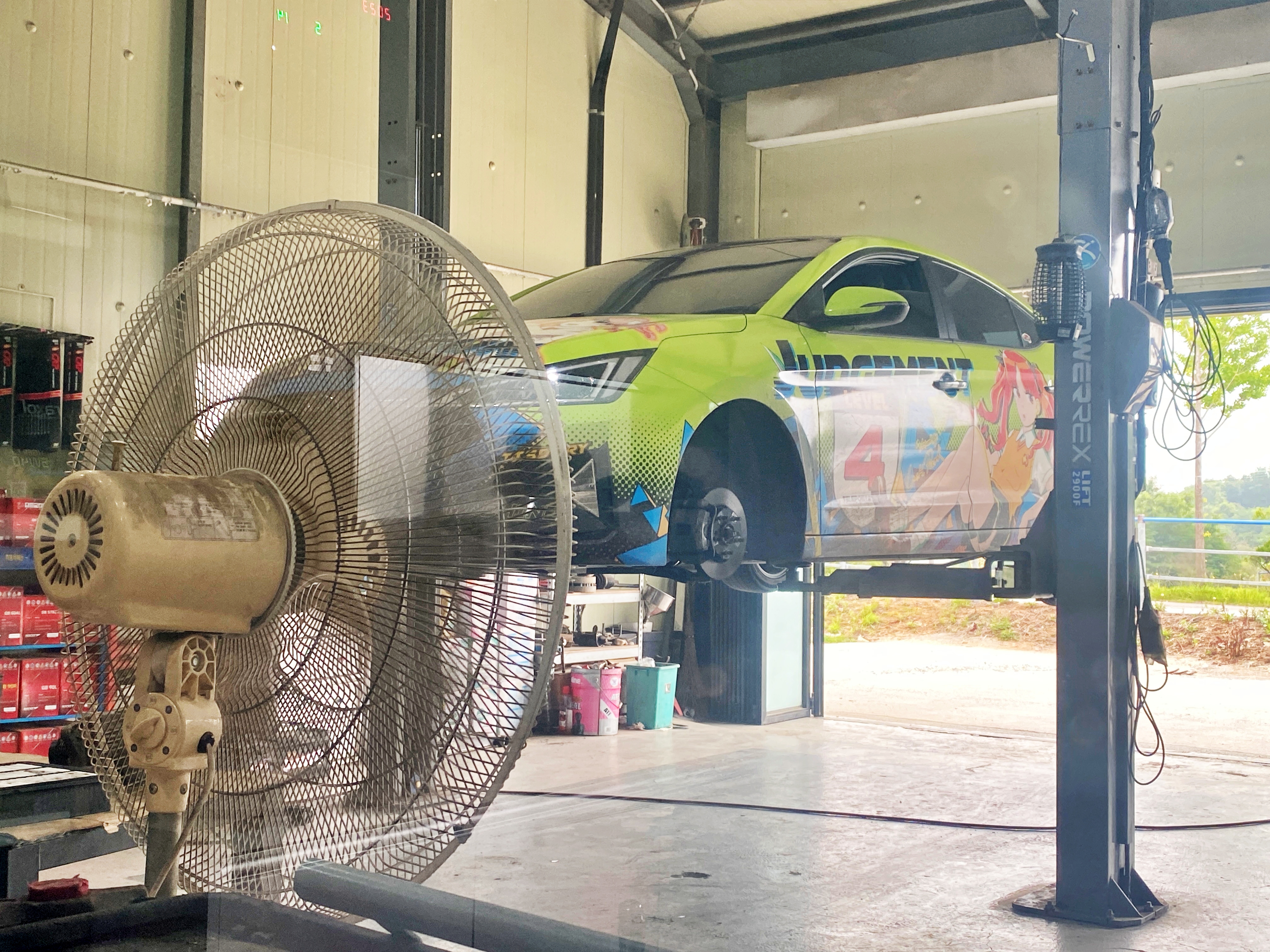 전륜 타이어만 후륜으로 옮겨놓은 휑한 상태로 있습니다.