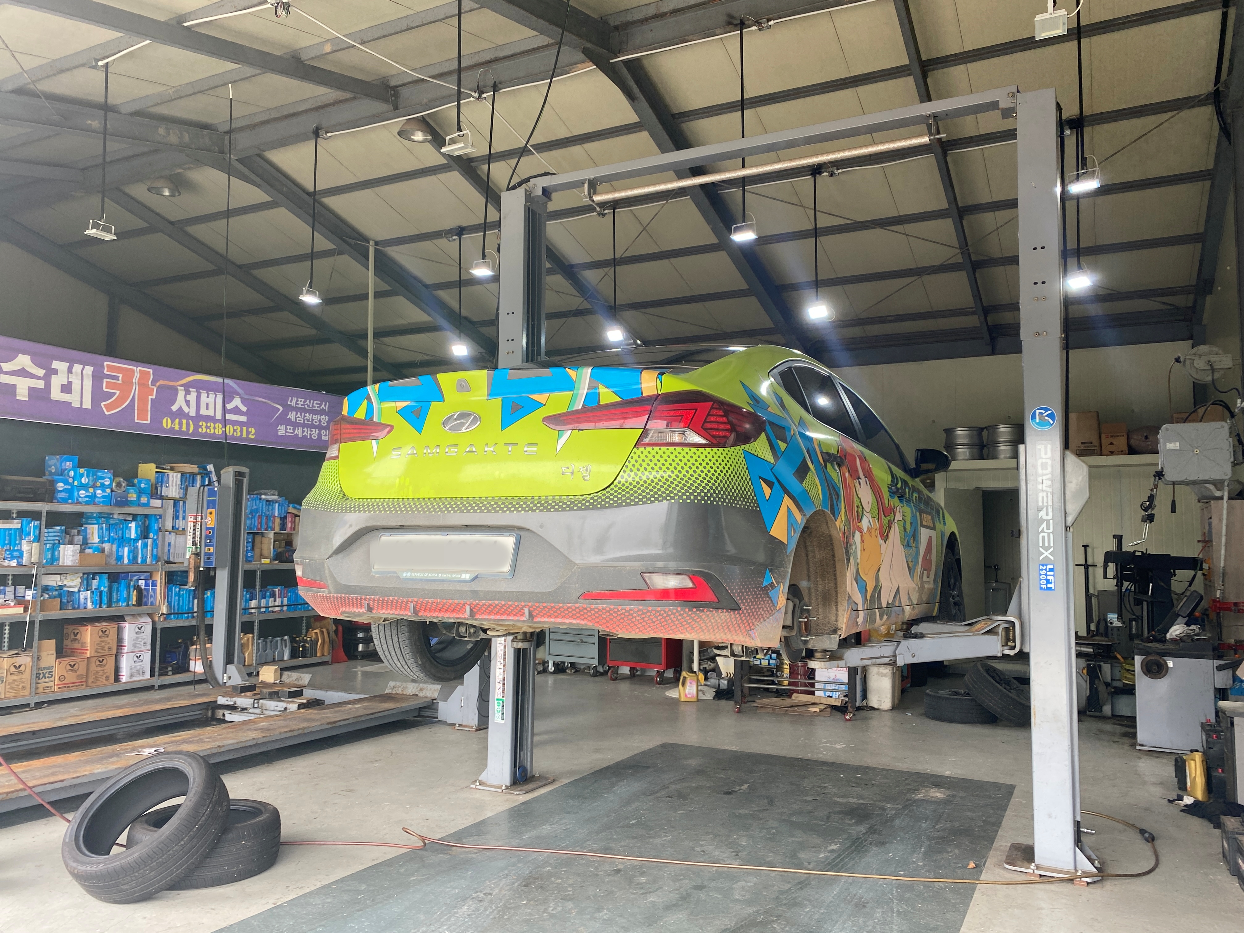 장마철이 시작되는 시점인지라 시기도 적절했고, 기존 전륜 타이어를 약 1만 km 정도 탔으니 뒤로 보내주고 앞에 새 타이어를 끼우면 될 것 같습니다. 며칠 전부터 타이어를 트렁크에 넣고 다녔었는데, 토요일에나 시간이 생겨 교체를 위해 카센터를 찾았습니다.