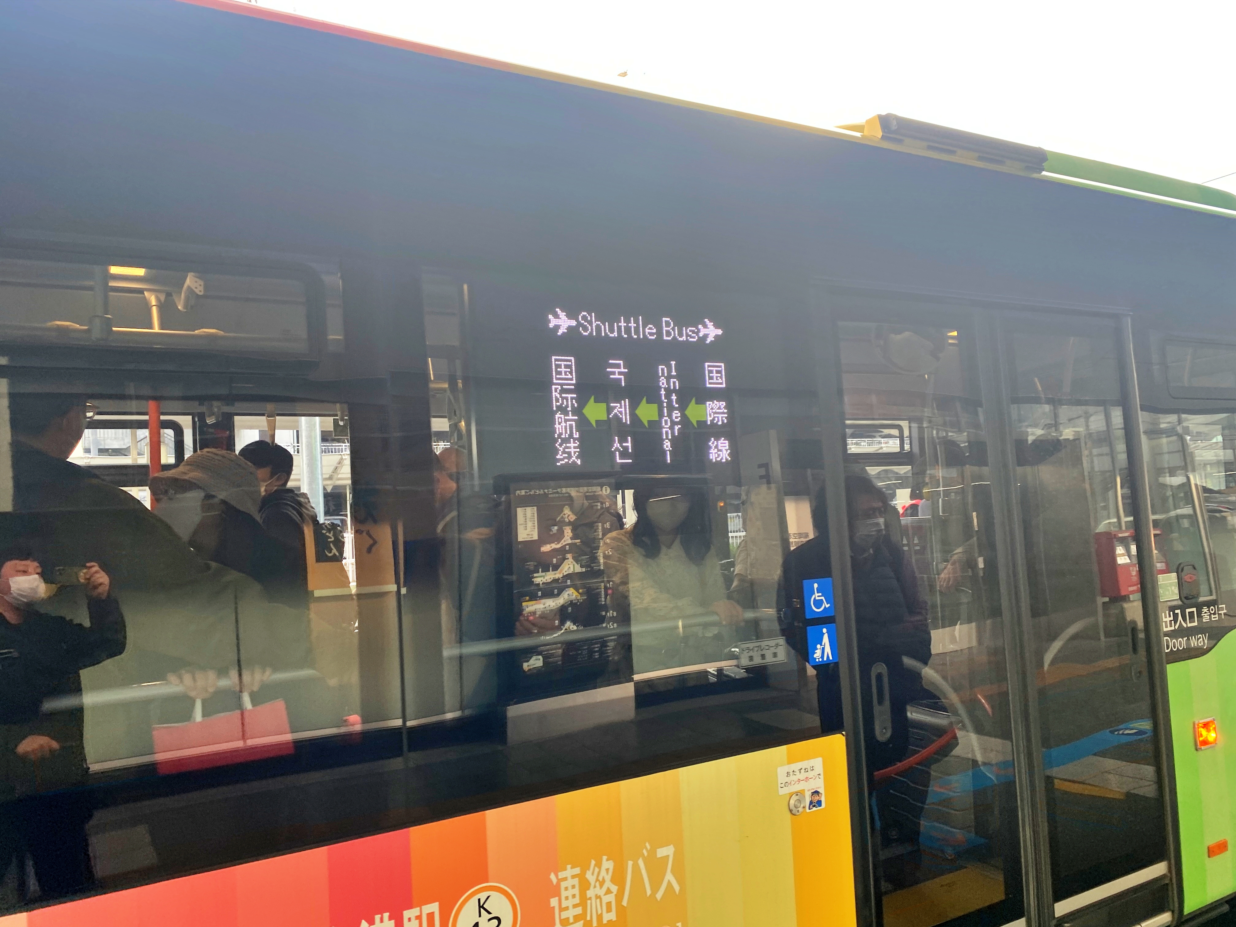 셔틀버스가 기다리고 있거나 없어도 정류장에서 기다리면 바로 옵니다. 소요시간은 정확히 10분이 걸립니다. 중간에 화물터미널에서 정차하기도 하지만, 출근하는 일부 직원들을 제외하곤 대부분 국제선 터미널에서 하차합니다.