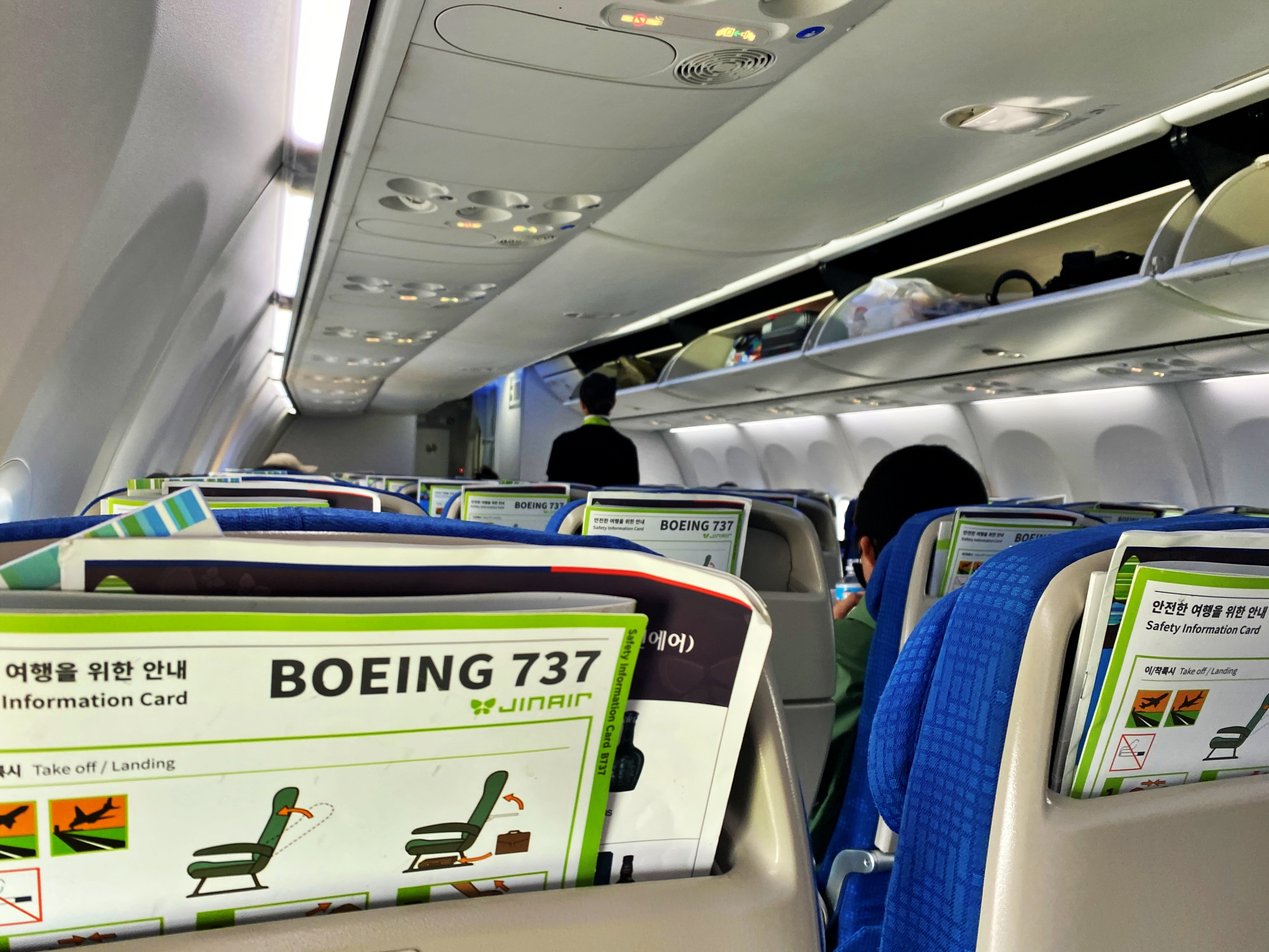 우리의 진에어 항공기가 이륙하고 있습니다.