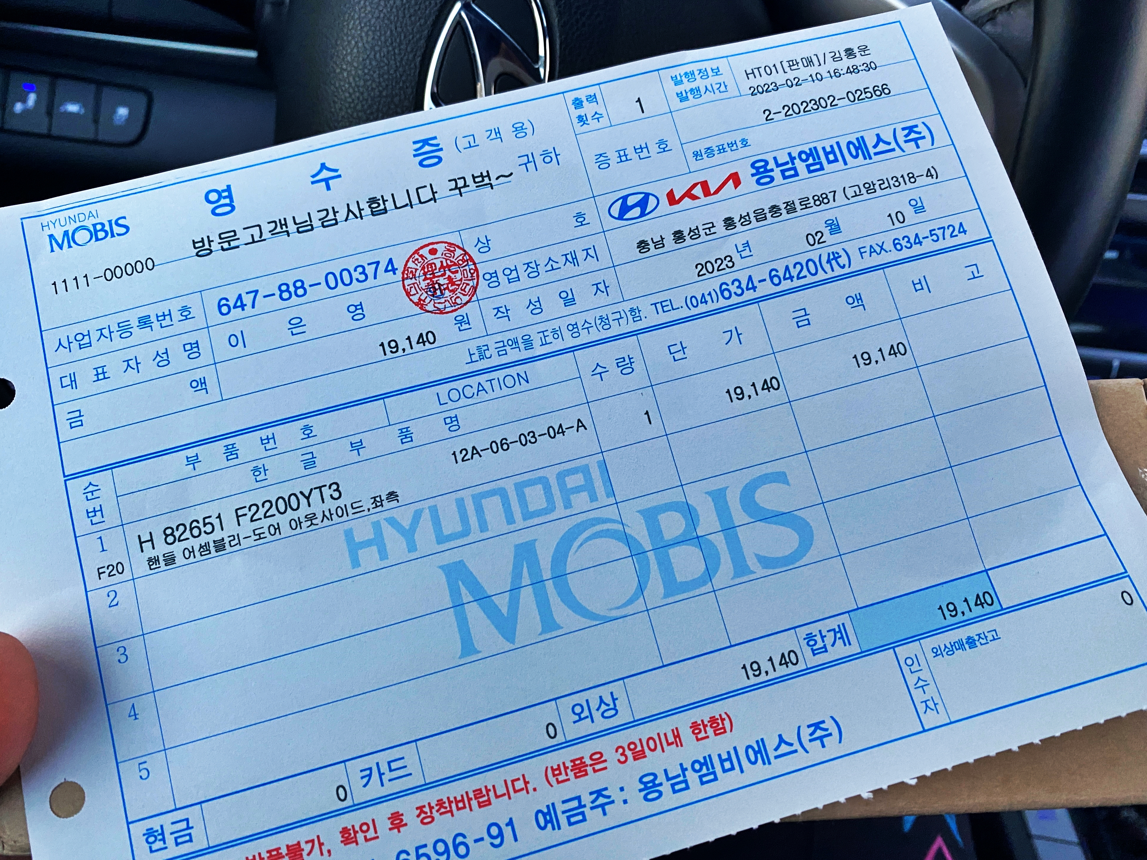 무려 도어캐치가 도장까지 되어있고, LED 램프도 달려있는데 2만 원이 넘지 않습니다. 대우차라면 기본 5만 원에서 시작할만한 부품도 2만 원 안쪽으로 구할 수 있어 확실히 좋습니다.