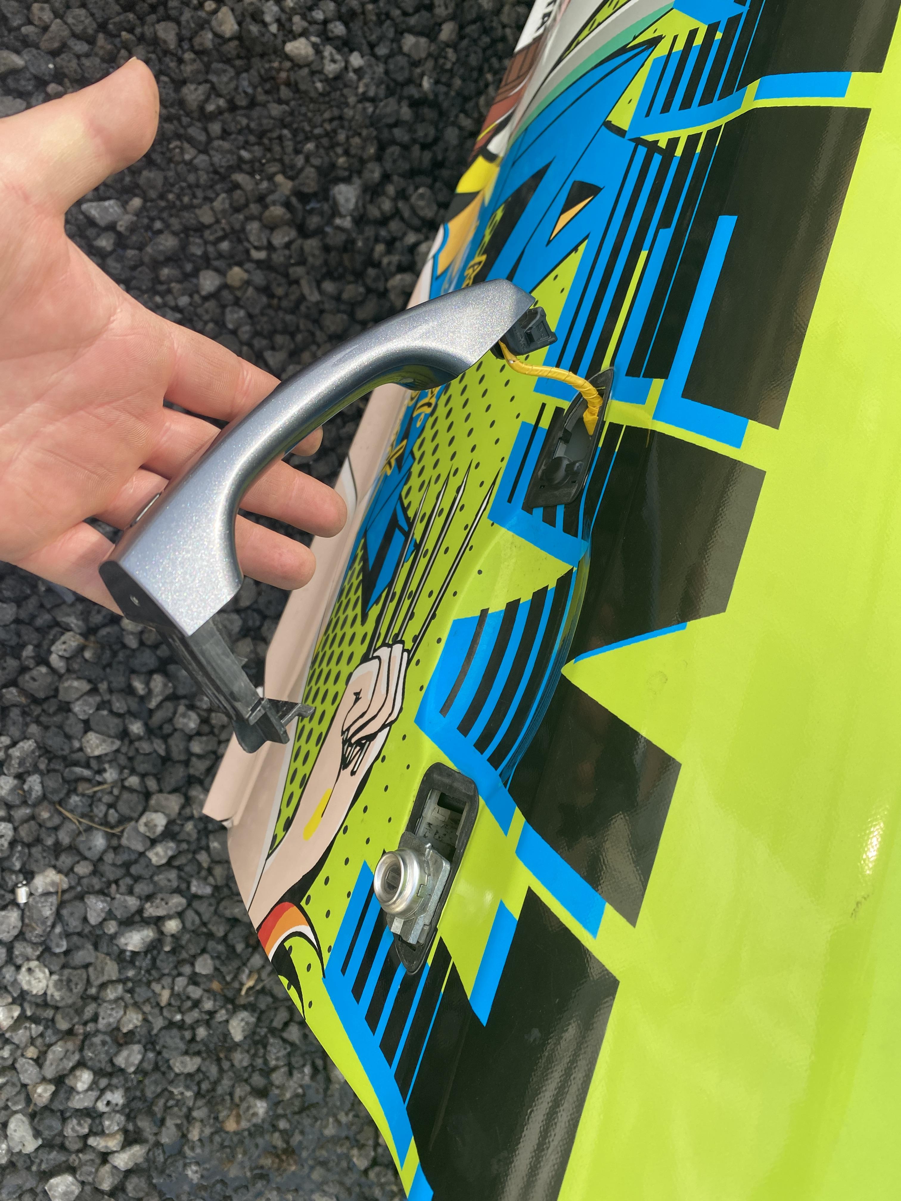 키박스 방향으로 도어캐치 손잡이를 당겨 탈거합니다.