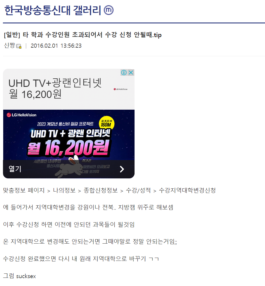 타 학과 수강인원 초과되어서 수강 신청 안될때.tip - 한국방송통신대 마이너 갤러리