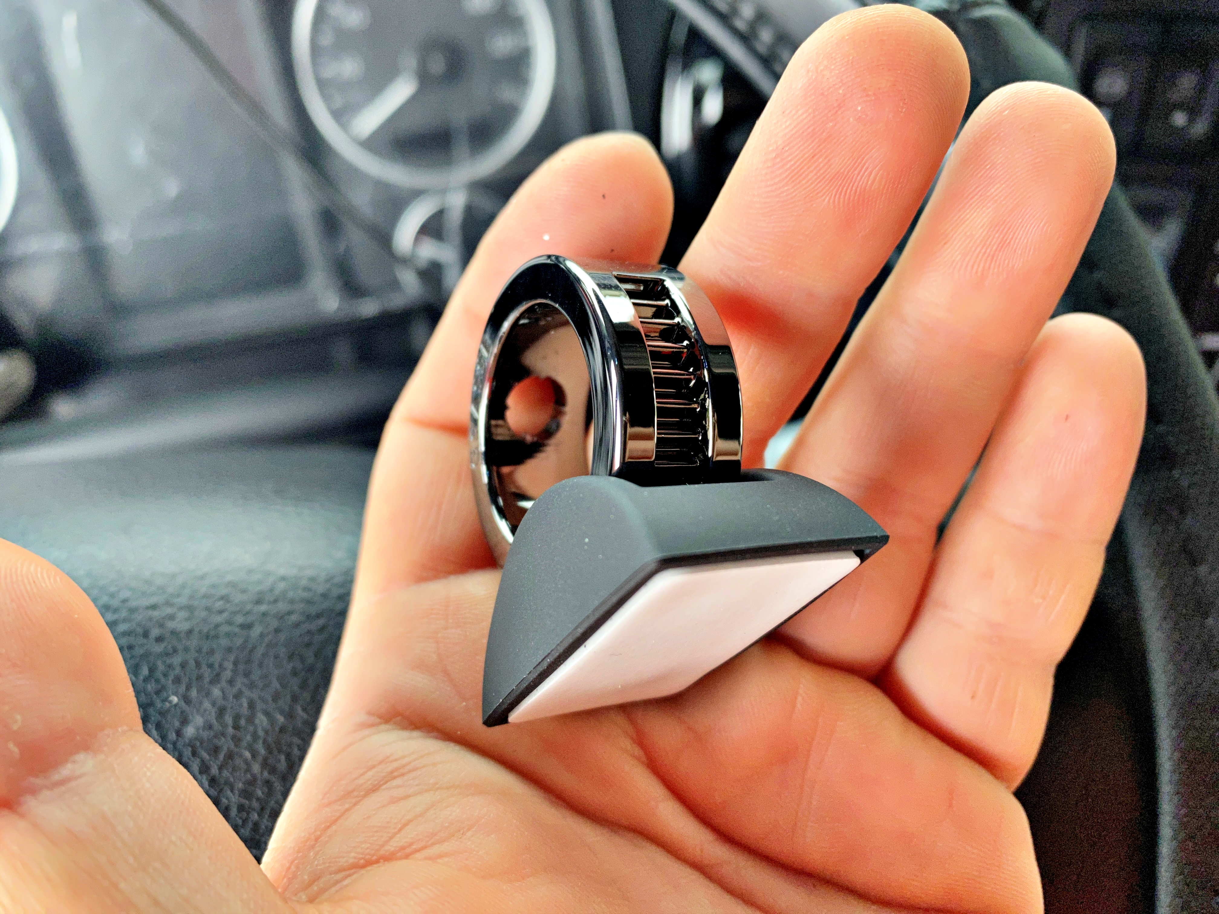 양면테이프를 활용하여 원하는 자리에 홀더를 부착하고 메탈링을 홀더에 끼워주면 됩니다. 메탈링 아래에 홀더와의 결합을 위한 톱니 모양이 보이죠. 절대 떨어지지 않고, 최대 60º까지 각도 조절이 가능합니다.