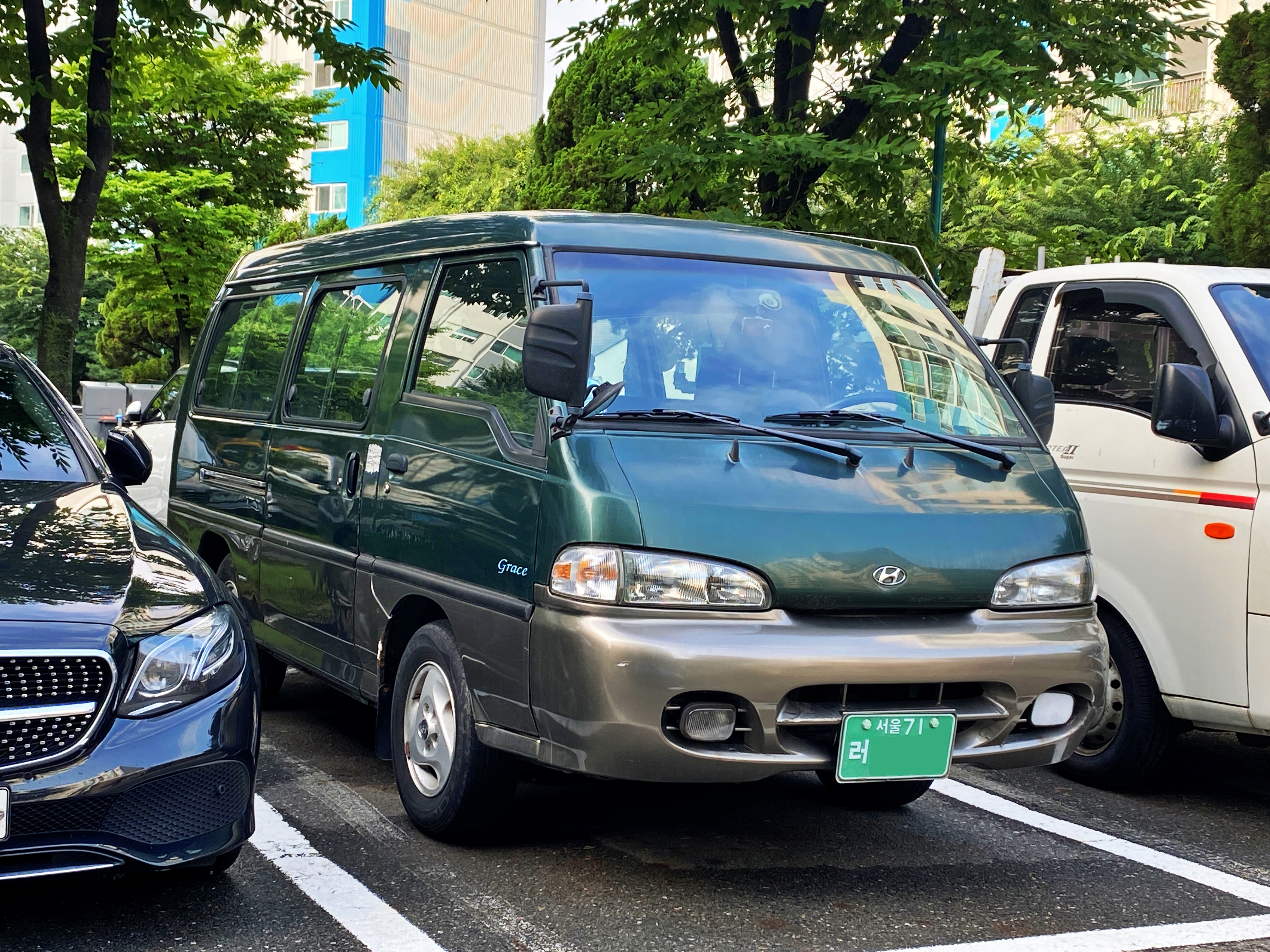 그레이스는 신군부 시절 정권에 의해 단종되었던 HD1000 승합차의 계보를 잇는 현대의 원박스형 승합차입니다. 당시 기술제휴 관계에 있었던 미쓰비시의 미니밴인 델리카 3세대 모델을 들여와 19
