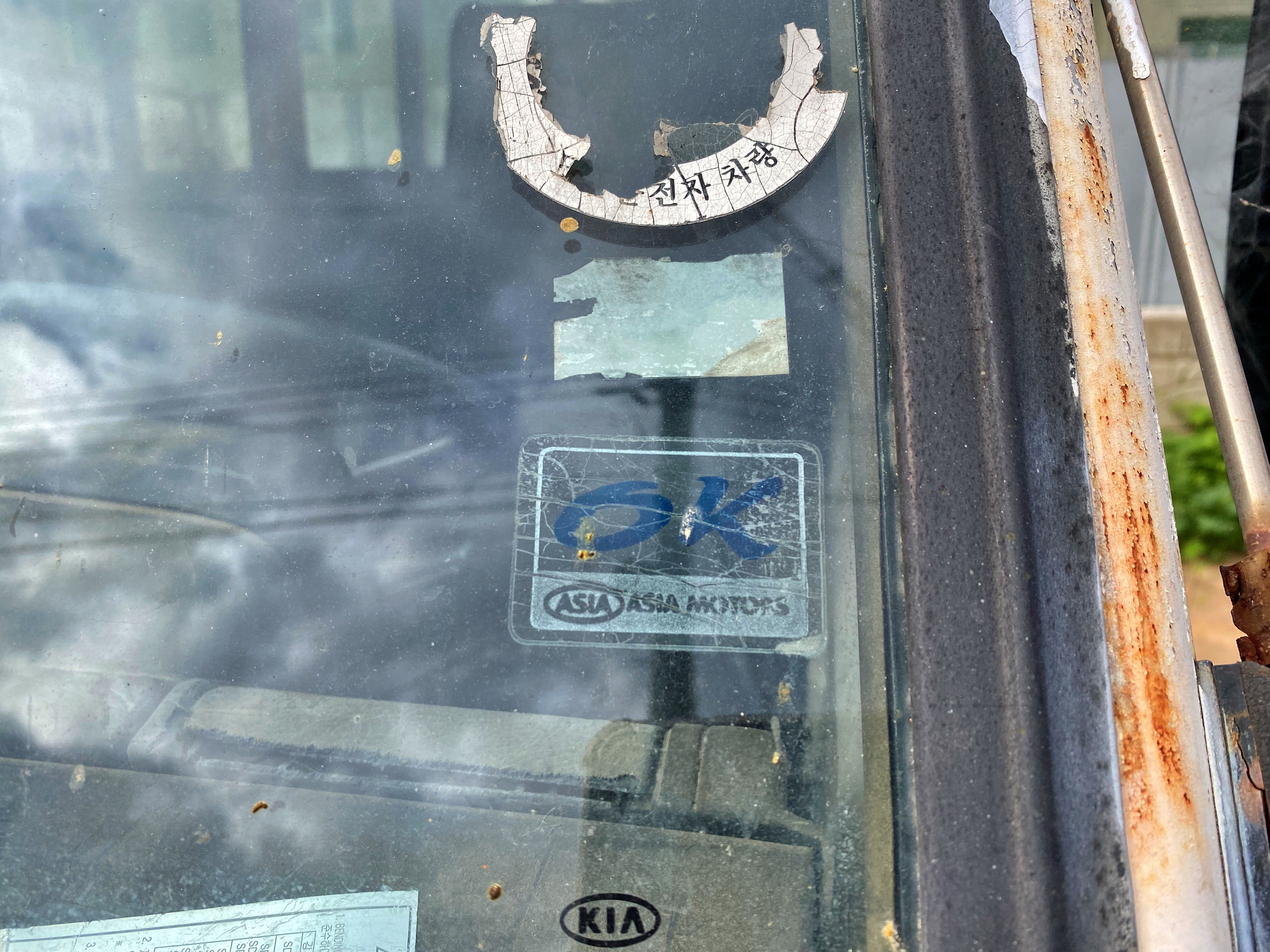 유리창의 OK 스티커는 기아가 아닌 아시아자동차 로고네요.