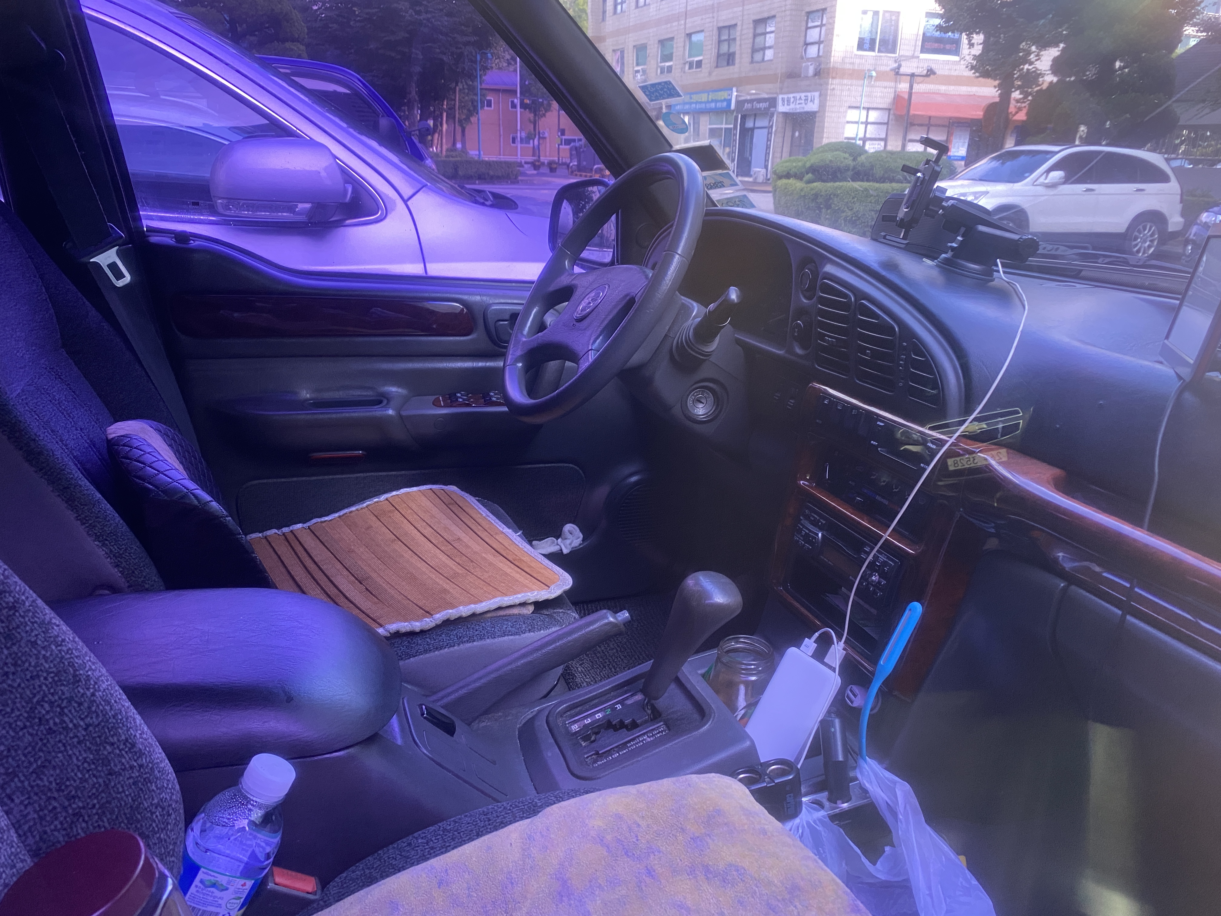 순정 4스포크 핸들과 특유의 직물시트와 오래된 방석. 그리고 오디오도 순정입니다. 세월은 흘렀지만 당시 꽤나 신경쓰고 판매했던 고급차의 느낌이 물씬 느껴집니다.