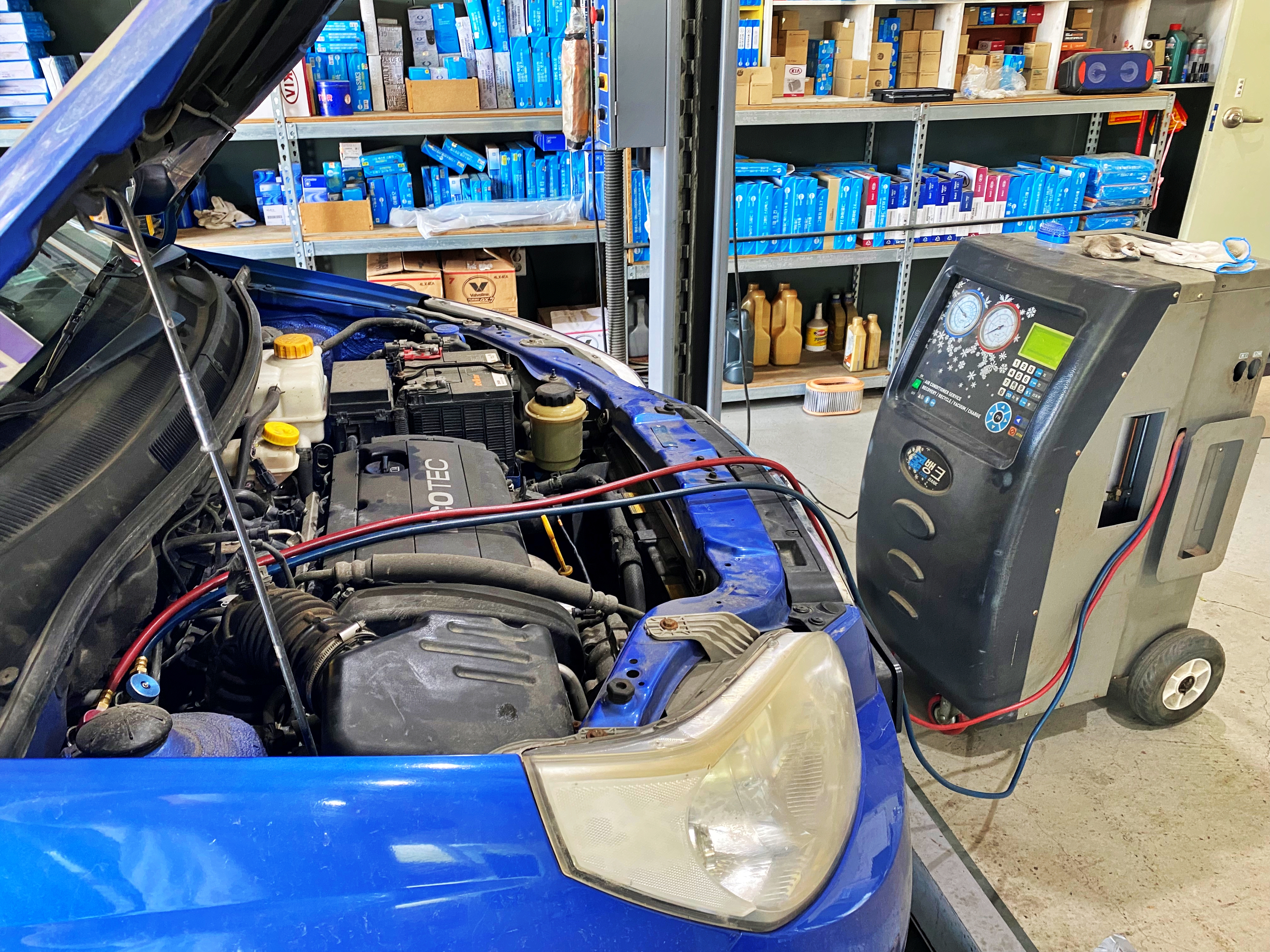 엔진오일 교체 이후 에어컨가스를 주입해줬습니다.