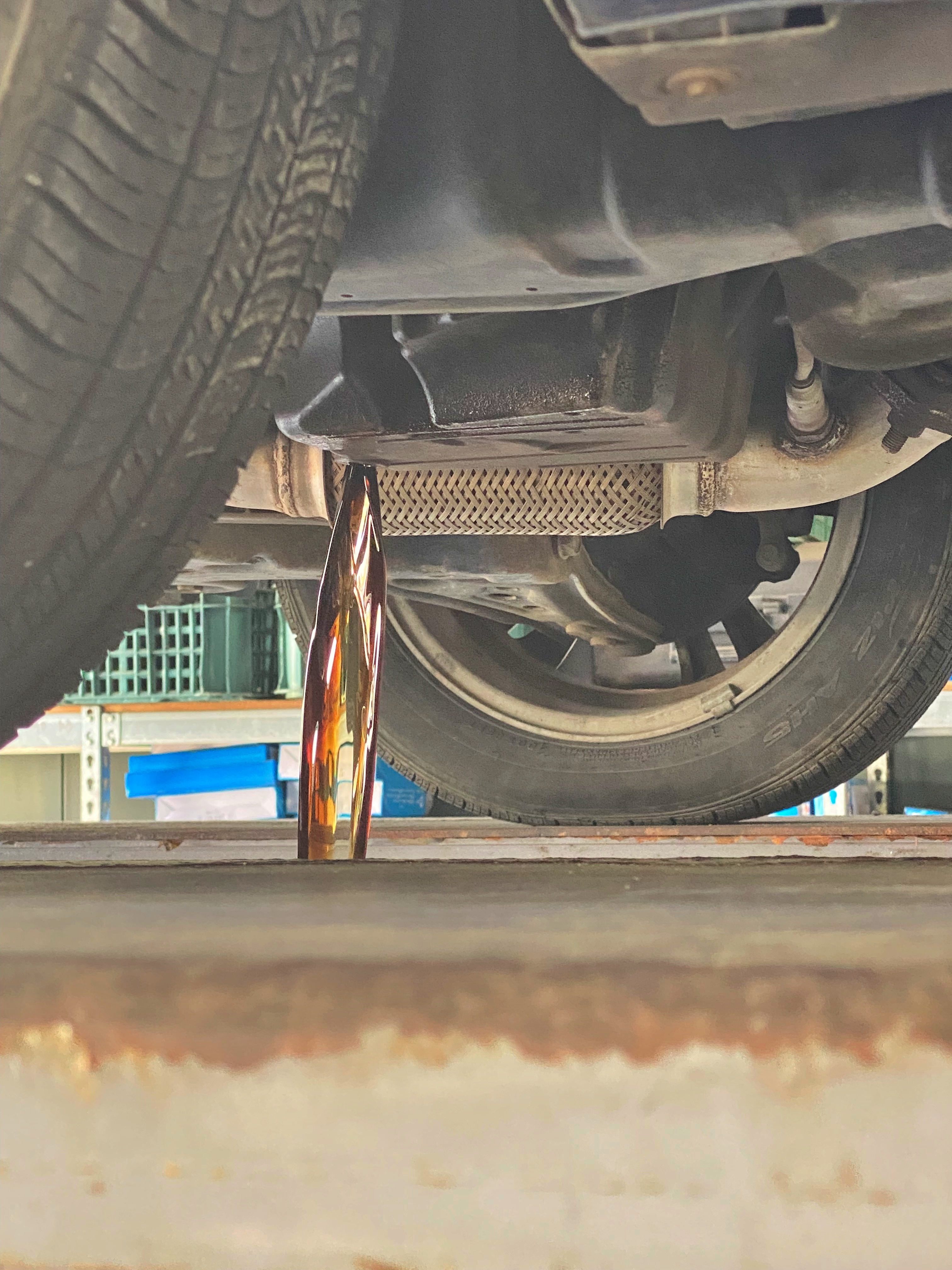 오일필터 하우징을 열어주고, 차량을 리프트에 올려 드레인 방식으로 기존 오일을 배출해냅니다.