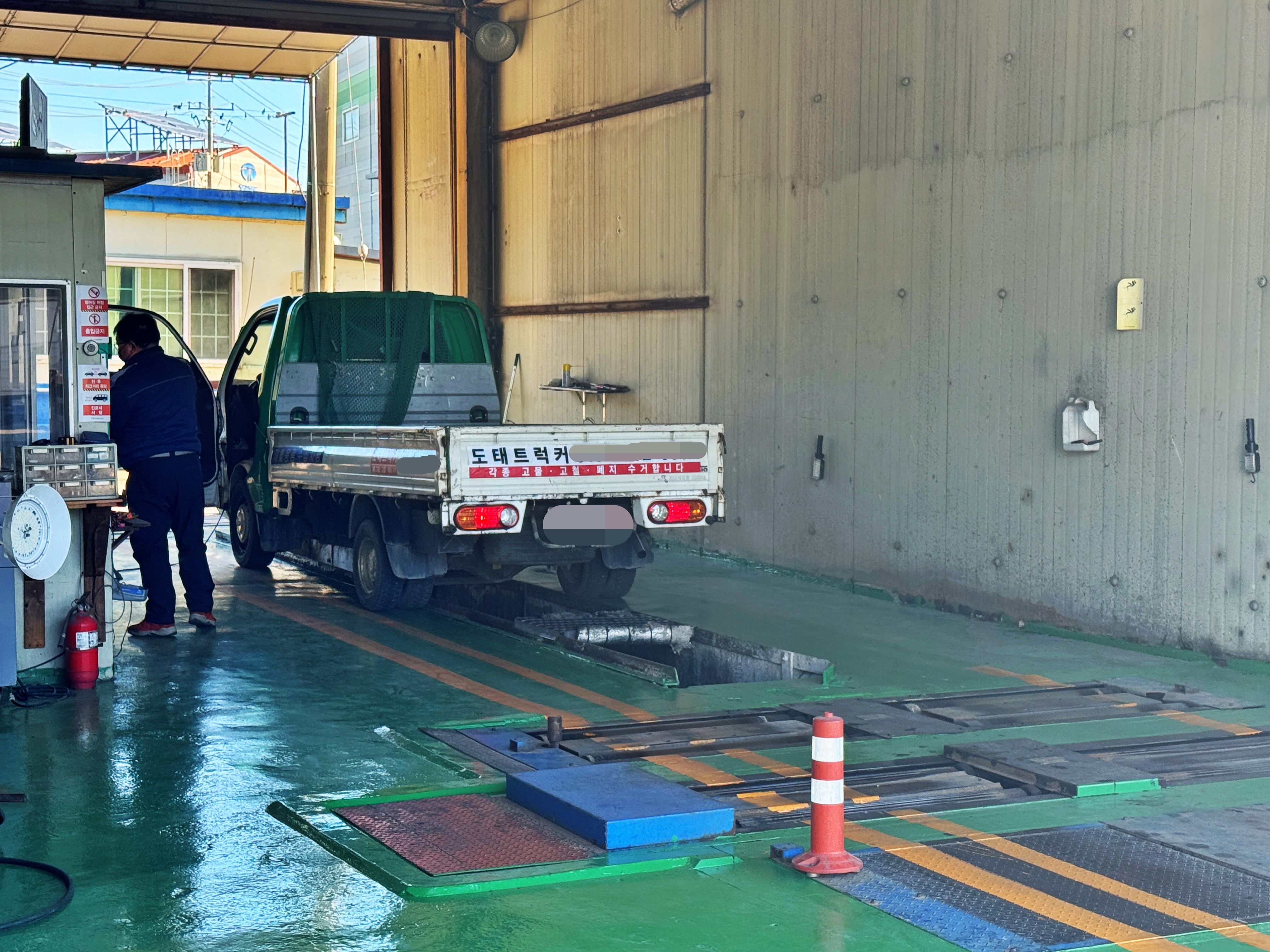 폐지수거용 차량이다 보니 편리성을 위해 합판으로 가벽을 세우고 다녔는데, 검사를 위해 가벽으로 세운 합판을 잠시 적재함 바닥에 내려놓습니다. 합판정도야 크게 무게가 나가지 않으니 적재함에 올려둬도 상관은 없습니다. 그렇게 가벽을 제거하고 대충 외곽도로에서 한 바퀴 밟아준 다음 업무시간에 맞춰 검사장으로 향합니다.