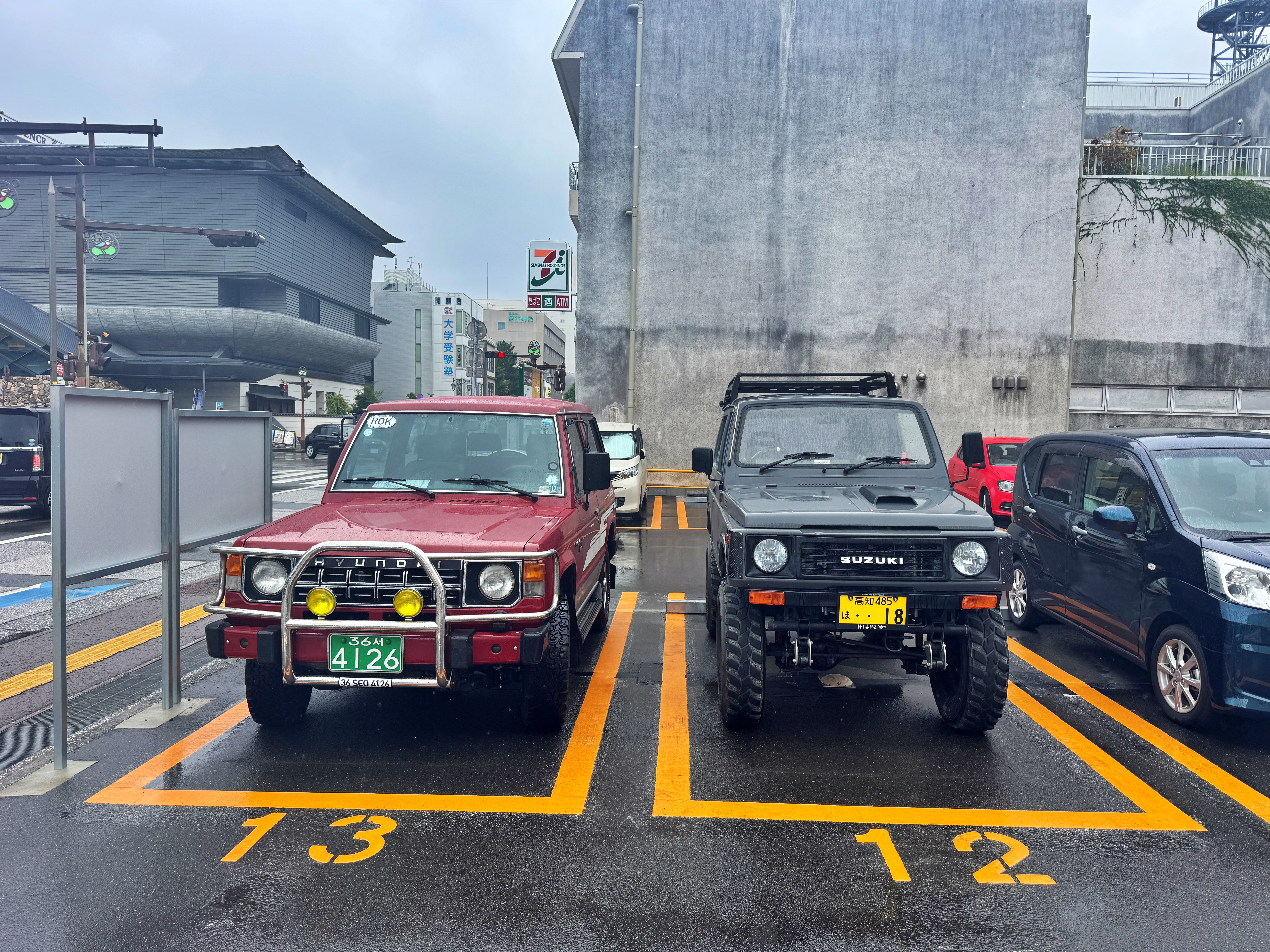 고치현의 고치시 역시 그랬고요. 성 주차장 말고 그 옆 주차장에 주차했는데 마침 구형 짐니 옆자리가 비어있기에 짐니 옆에 차를 세우고 올라가 봅니다. 아 근데 이 동네는 무슨 성 주변인데도 도로 노면 상태가 개판이었습니다. 그거 하나는 생생하게 기억나네요.