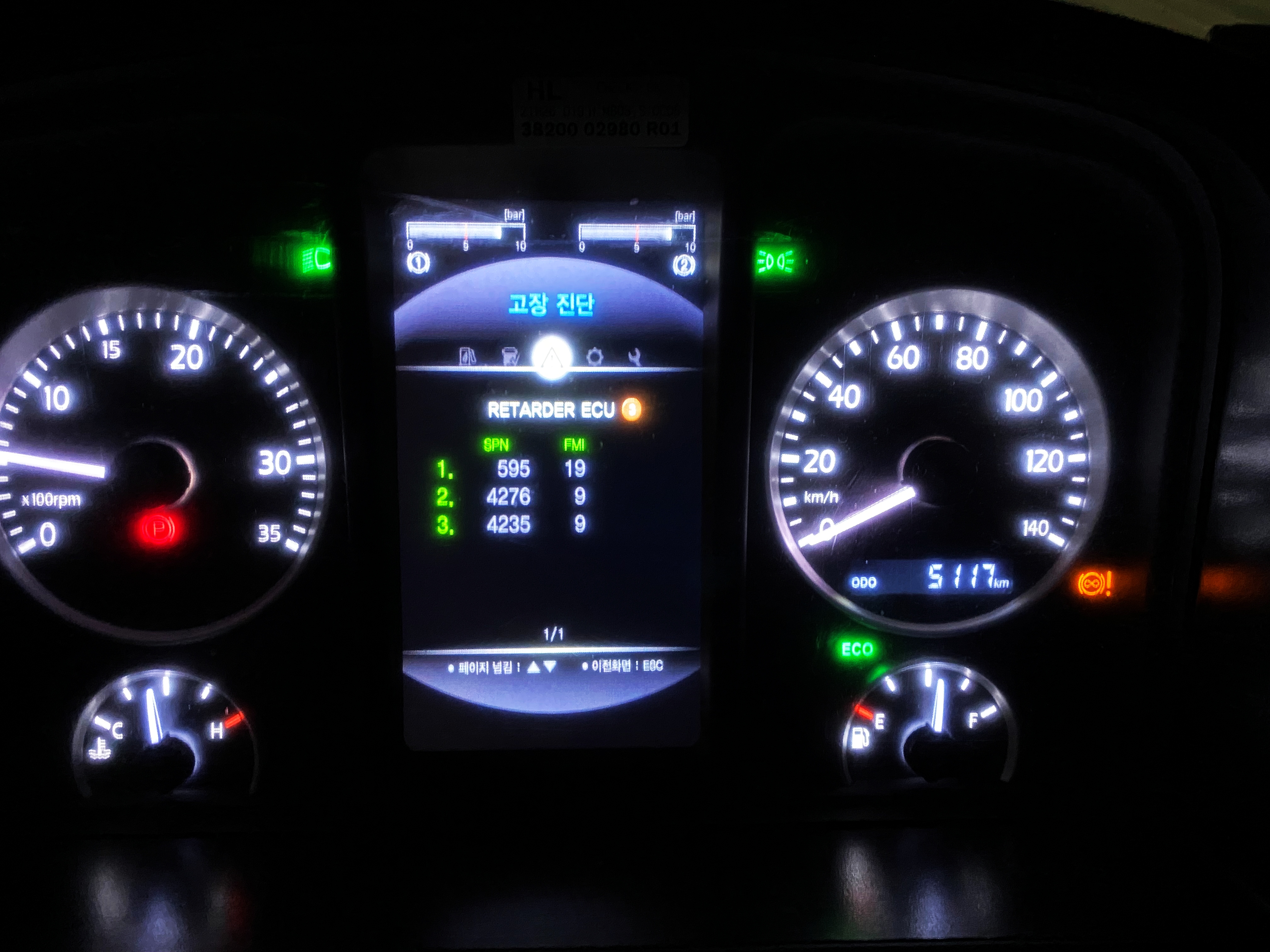 엔진 및 ATS ECU와 리터더 ECU에 오류코드가 검출되었네요.