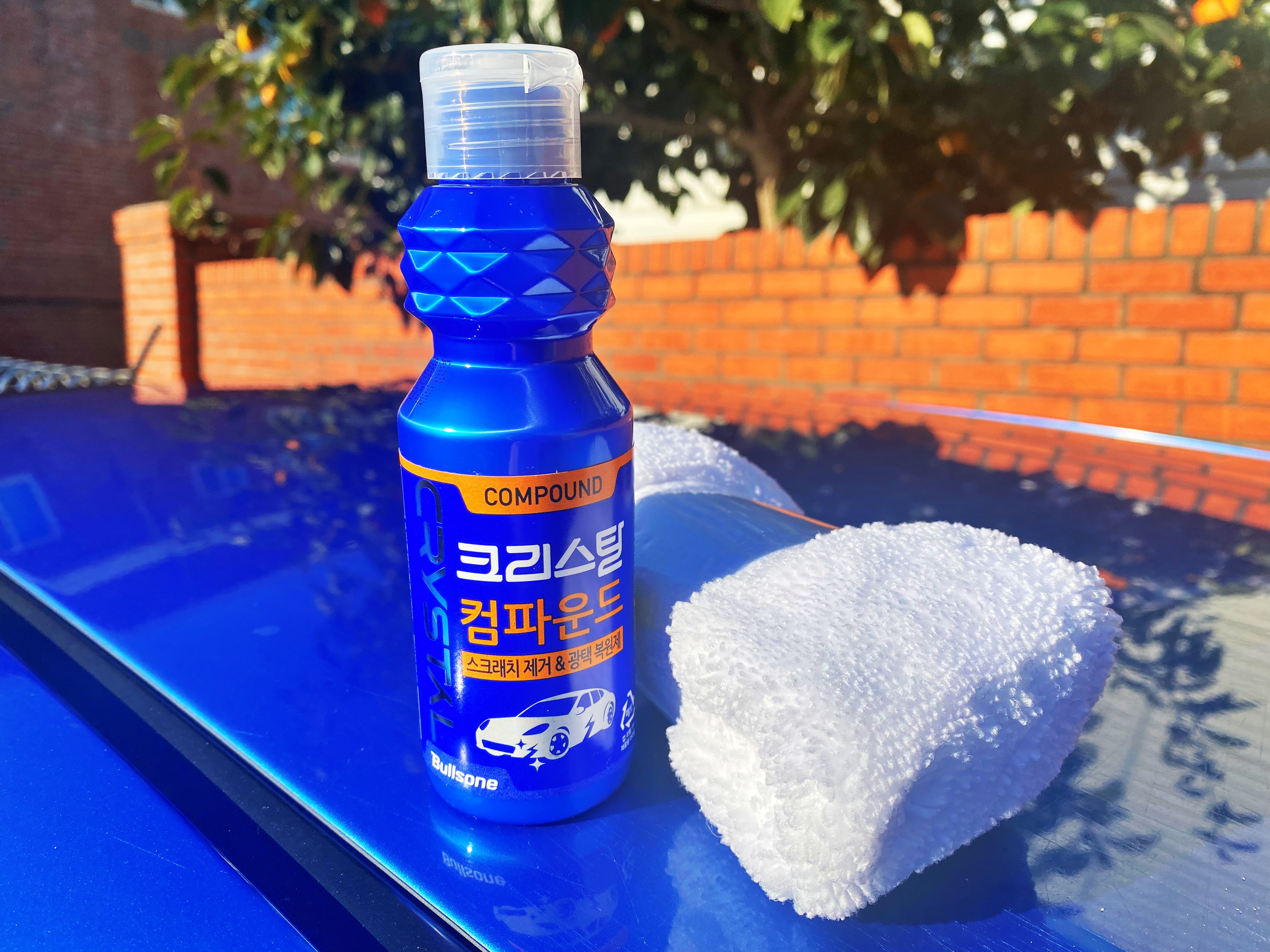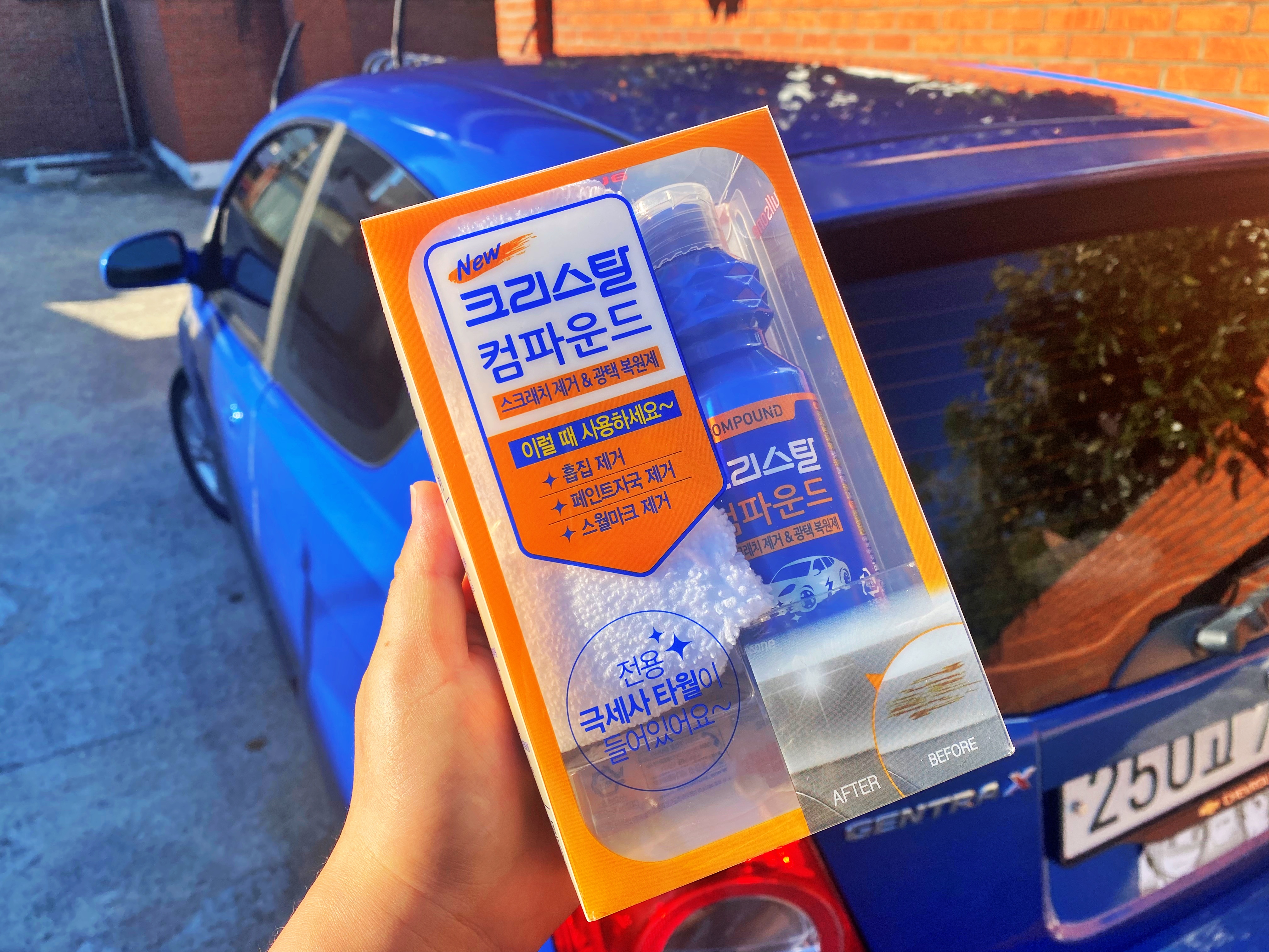 자잘한 기스가 많은 젠트라에 사용할 제품은 크리스탈 컴파운드입니다. 가성비 최강의 물왁스로 이름을 날리는 크리스탈 제품군의 대장 '크리스탈 코트 플러스'처럼 크리스탈 브랜드에 편입된 제품들은 일반적인 제품보다 월등한 성능을 자랑합니다. 물론 가격도 조금 더 비싸지만 말이죠.