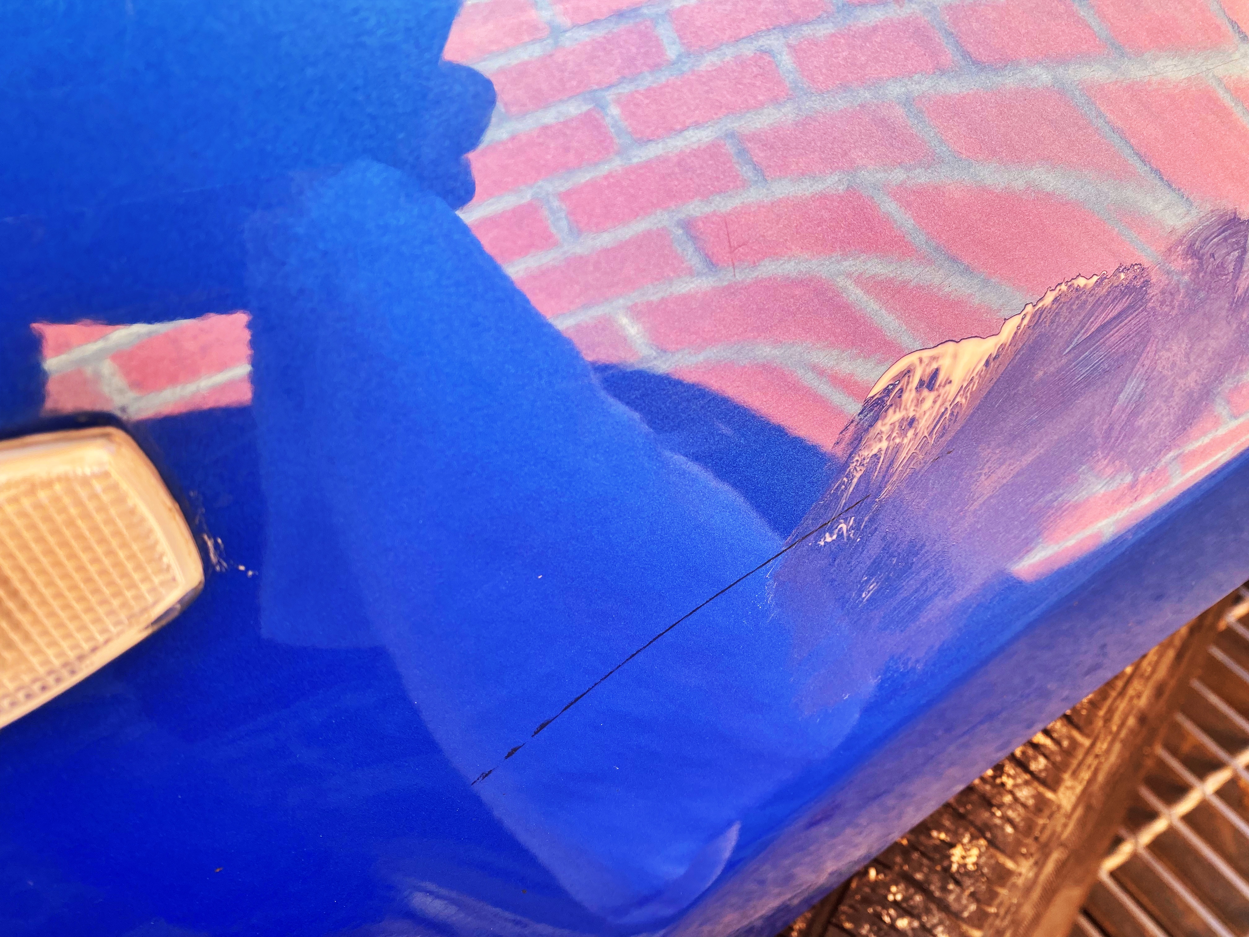 이 콩알만큼의 컴파운드로도 어지간한 페인트 자국이나 작은 기스는 지워줄겁니다. 휀다에 매우 지랄맞게 보이던 무언가가 묻었던 흔적을 지워주기로 합니다.