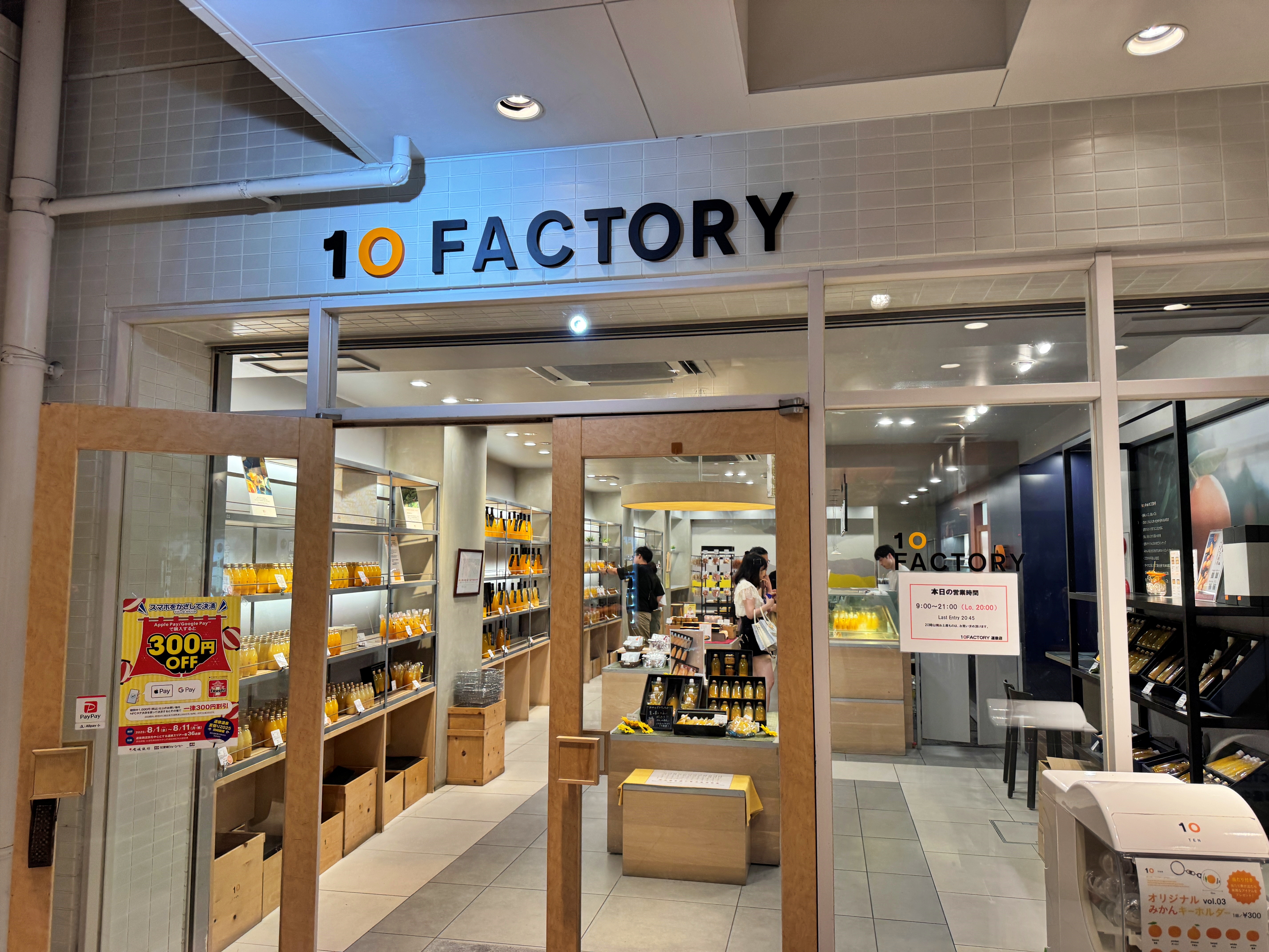 그래도 귤로 유명한 마츠야마에 왔는데, 감귤쥬스를 먹고 가야지 않겠나 싶어 아까 파제로 미니를 타고 오셨던 하타마루상께 트위터로 혹시 감귤쥬스를 파는 곳이 있는지 여쭤보았습니다만, 8시가 넘은 시간인지라 이미 문을 다 닫았고 도고온센역 앞에 10 FACTORY(텐 팩토리)라는 곳이 늦게까지 한다는 이야기를 듣고 다시 도고온센역으로 향했습니다.
