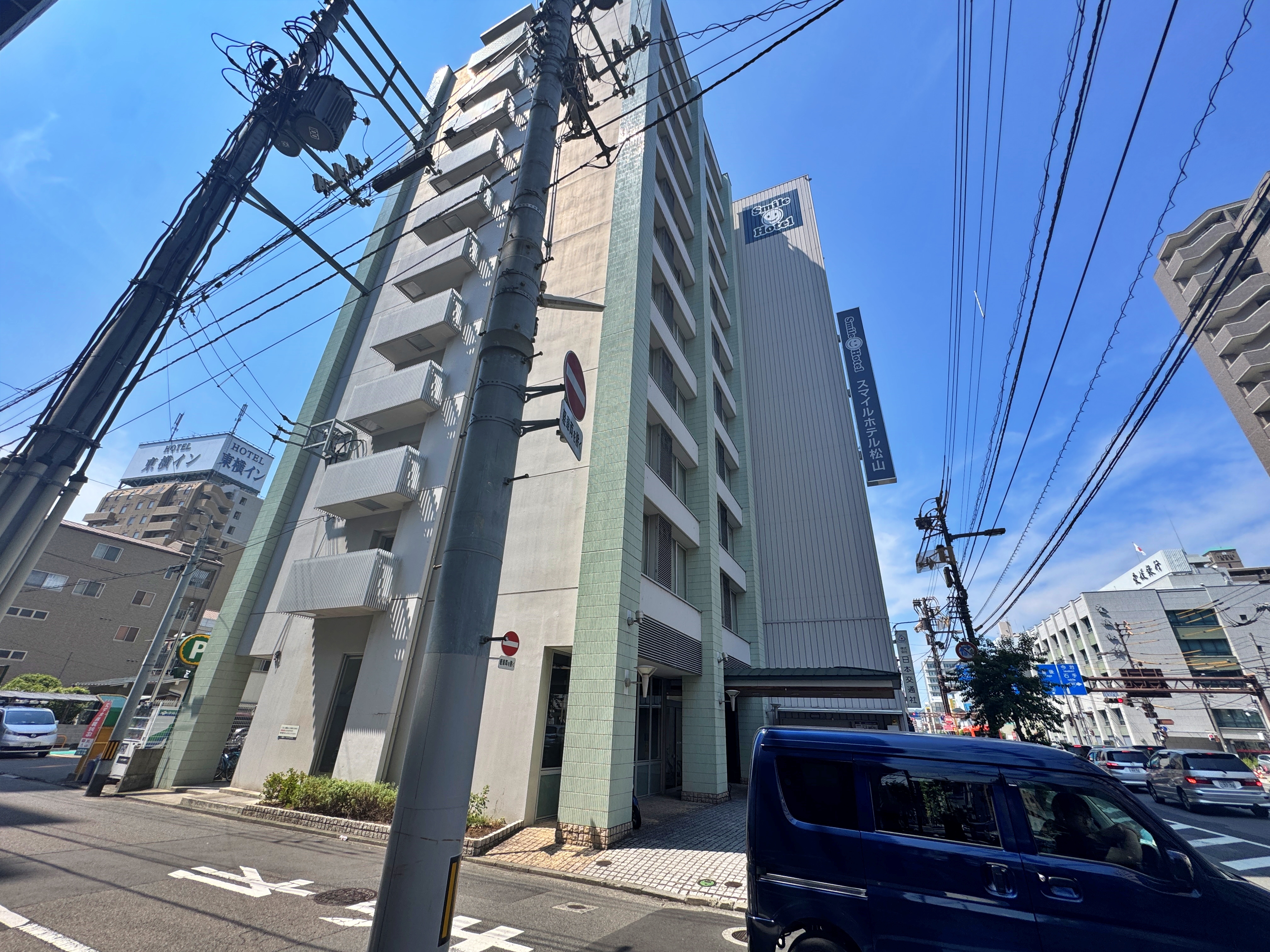 주차장 바로 옆의 호텔. 스마일 호텔 마츠야마(スマイルホテル松山)입니다.