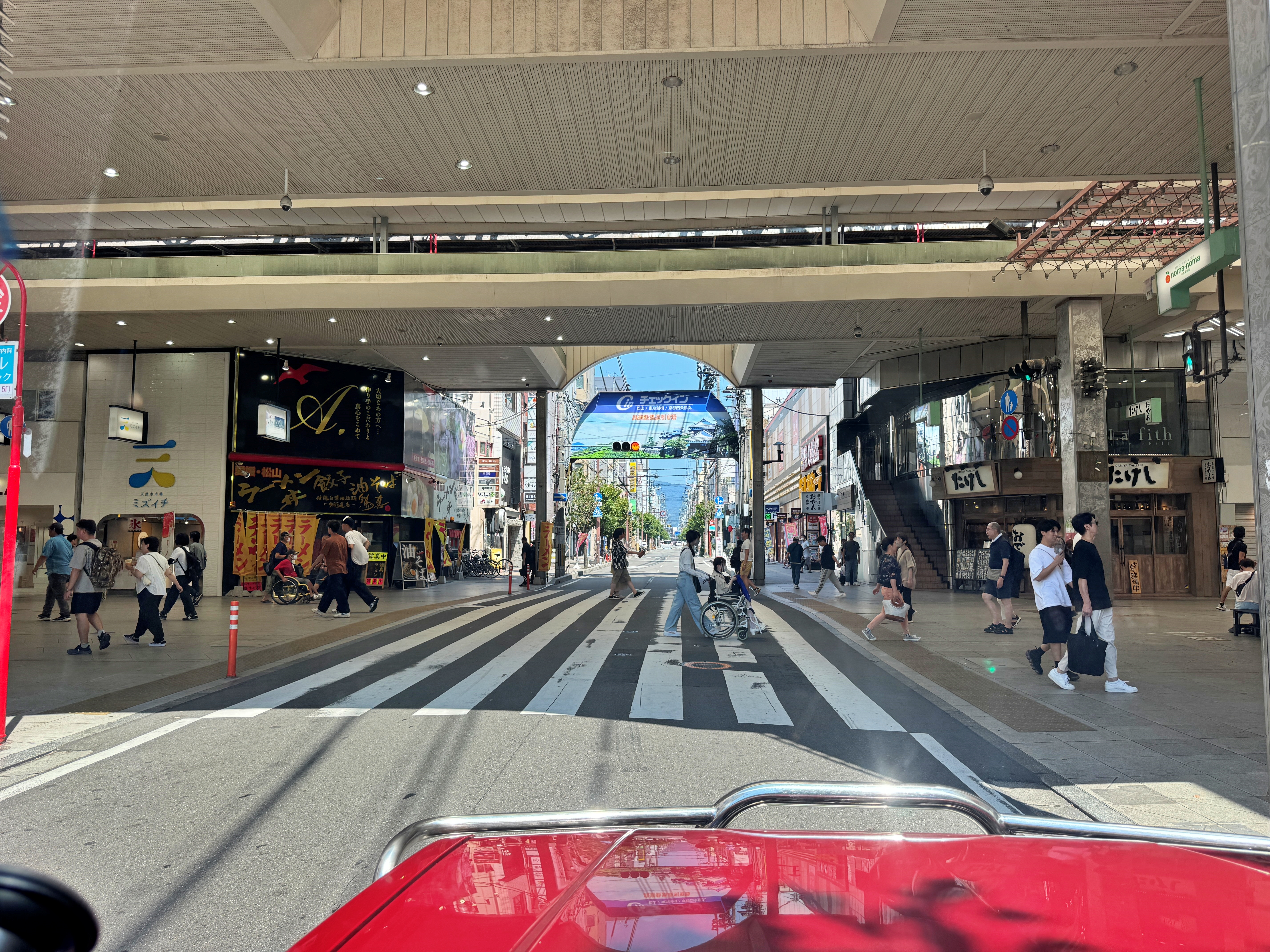 마쓰야마의 중심 오카이도 상점가(大街道 商店街)도 횡단합니다.