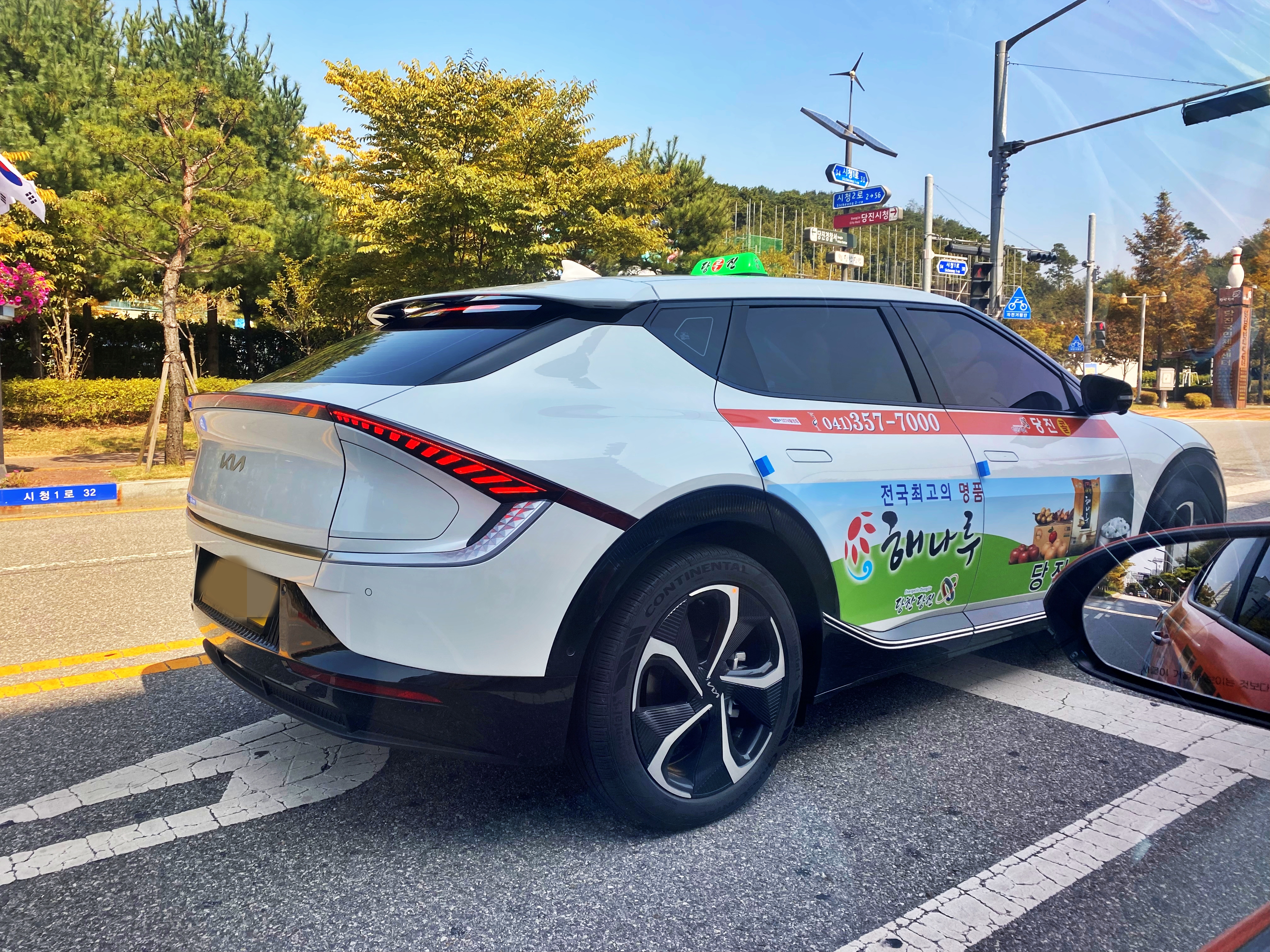 당진시내에서 목격한 기아 EV6 개인택시의 모습입니다.