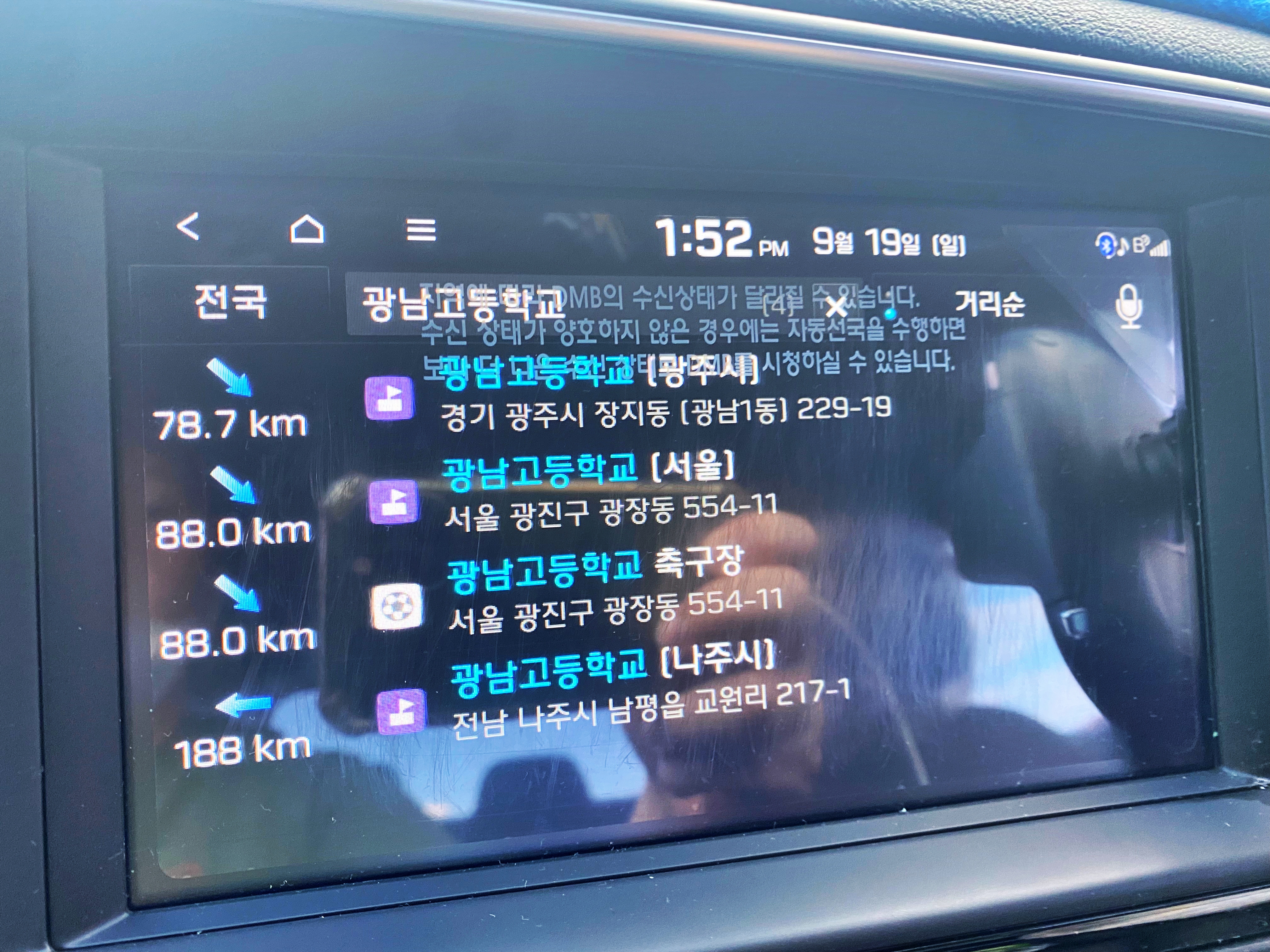 내비게이션을 고등학교로 찍고 왔으니 당연히 고등학교 정문 앞으로 안내합니다.