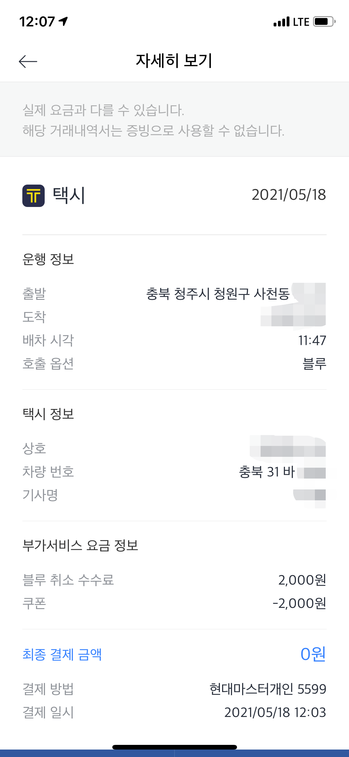 가뜩이나 킥보드도 고장나서 짜증나는데 믿었던 택시에 승차거부까지 당해버리니 폭발 직전가지 갑니다만, 뭐 방법이 있습니까? 다른 택시 기다리는 방법 말곤 없지요. 바로 다른 택시가 배차되었고, 다른 택시가 거의 다 와 갈 즈음 승차거부 능력을 가진 초능력자께서 제 귀책을 이유로 배차를 취소하여 2,000원의 취소수수료를 먹여주셨습니다.
