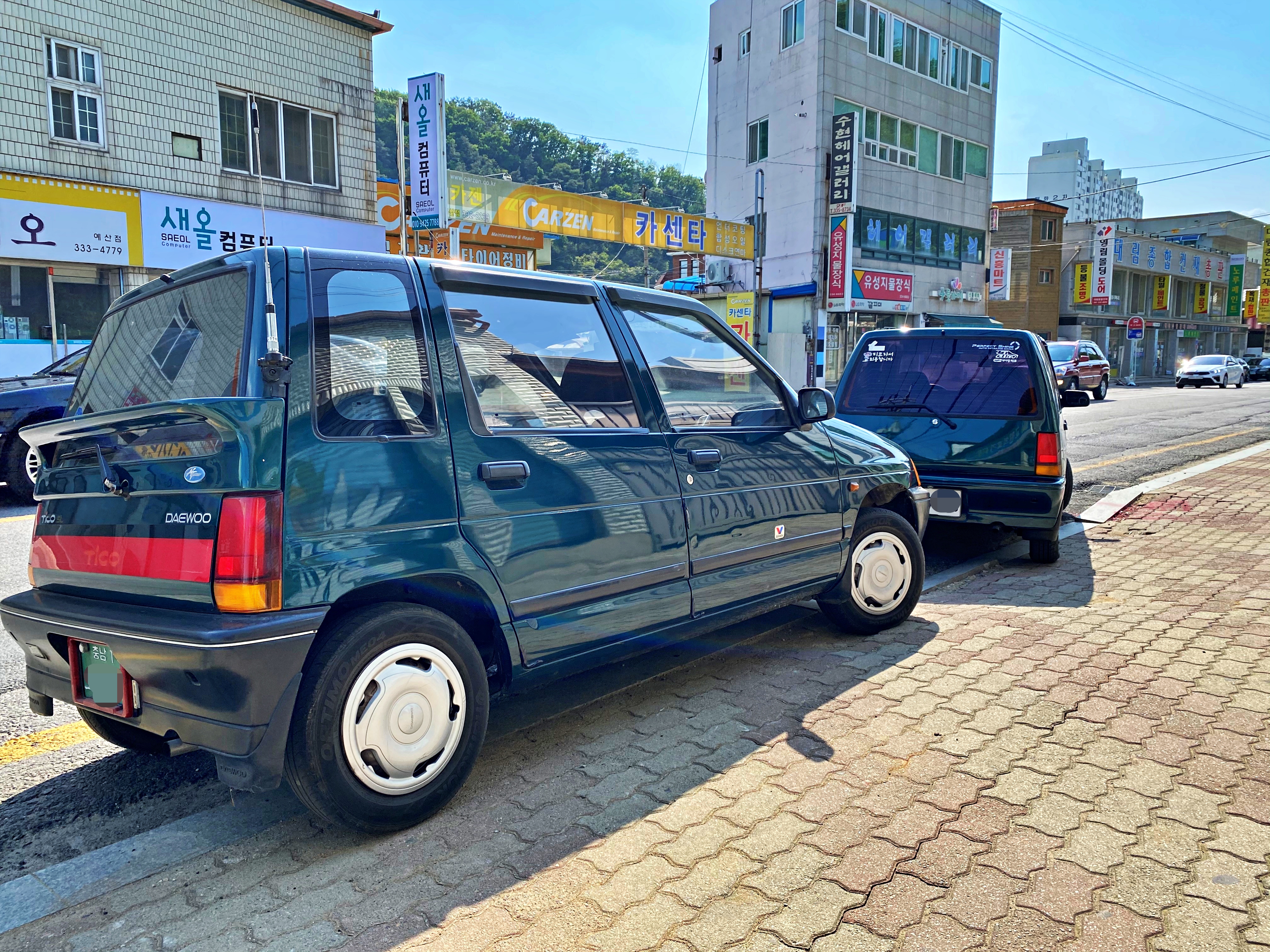 95년과 96년에 등록된 96년형 순정 녹색 티코가 만났습니다.
