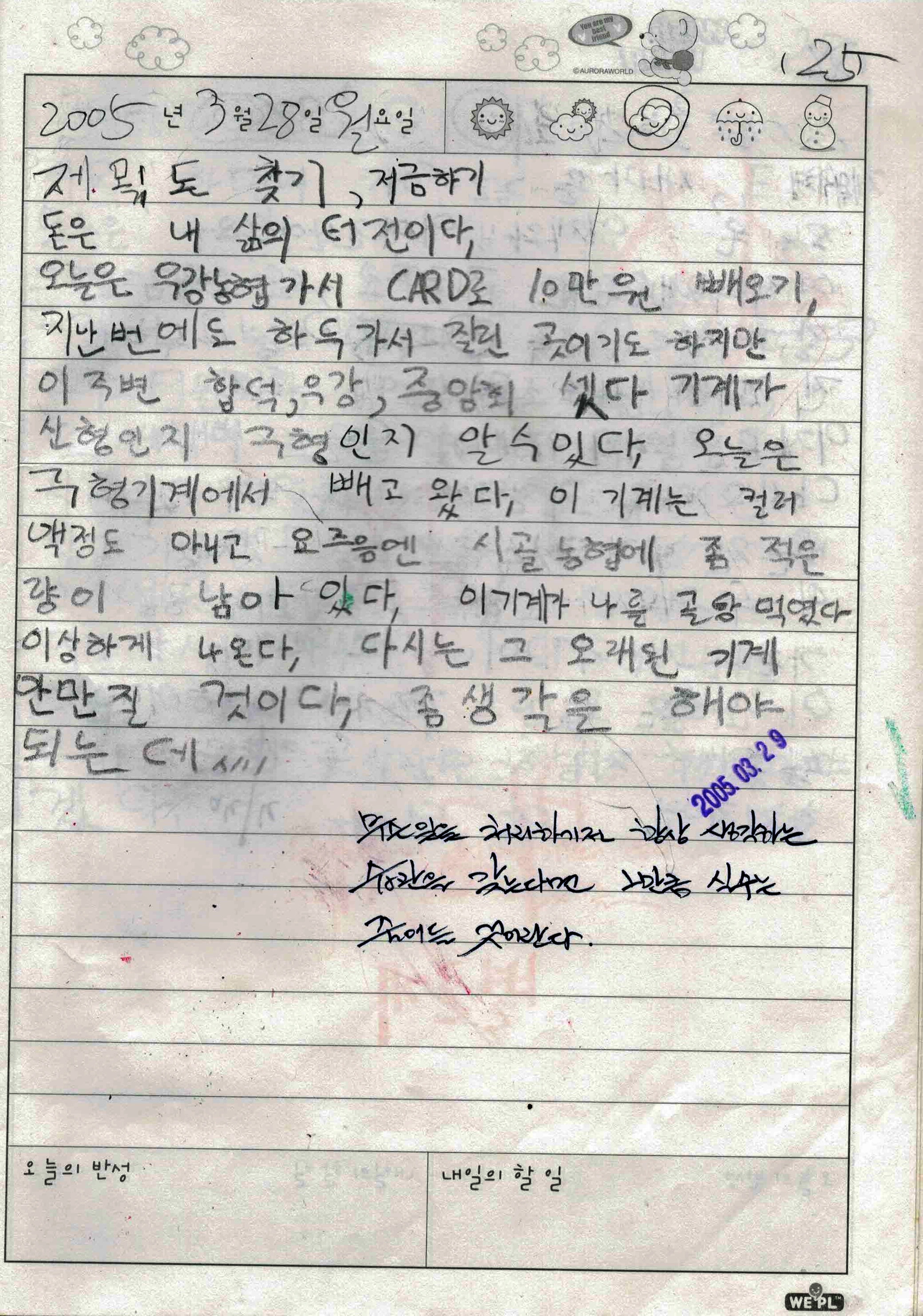 16년 전 2005년 3월 28일의 저는 농협에 가서 10만원을 찾아오는 심부름을 하게 되었습니다만, 당시 오래된 ATM기에서 돈을 출금하다 오류가 생겨 애를 먹었다는 내용입니다. 보고 오시죠.