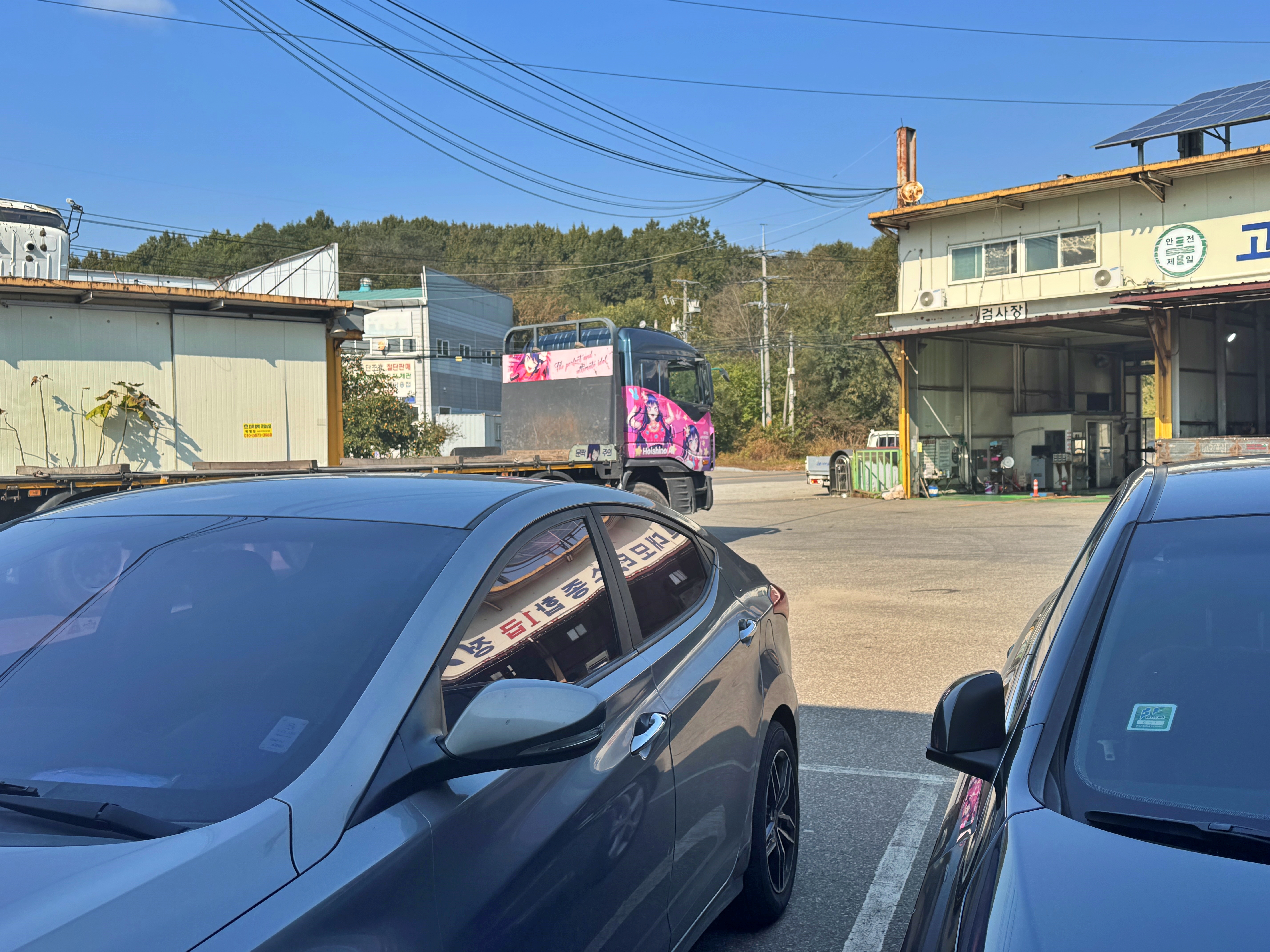 차고지 앞 카센터는 아주 바쁘기에 차로 1분 거리의 다른 타이어집으로 왔습니다.
