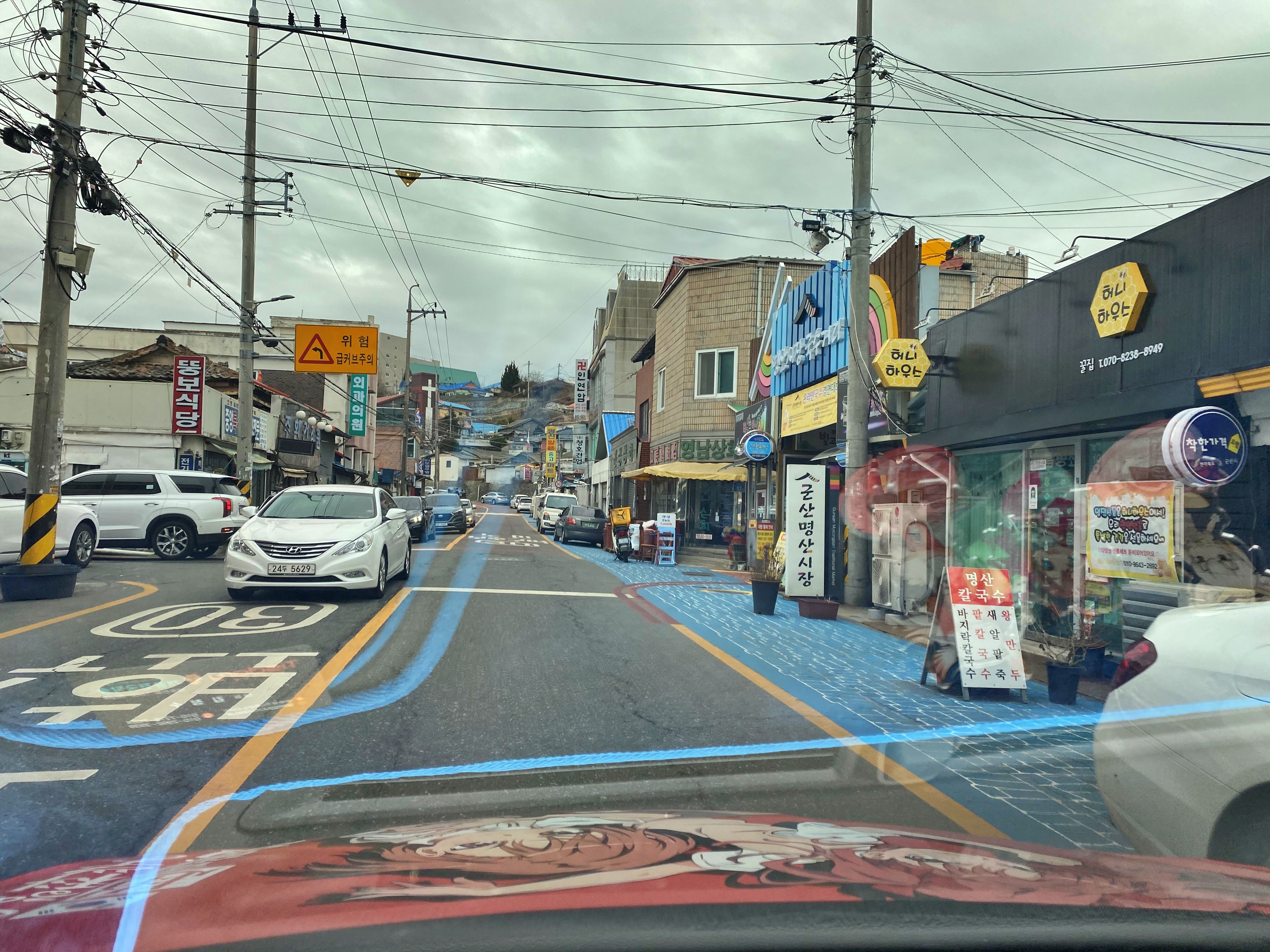 시골 읍 혹은 면소재지 시내 길을 관통하는 느낌의 길들이 계속 이어집니다.