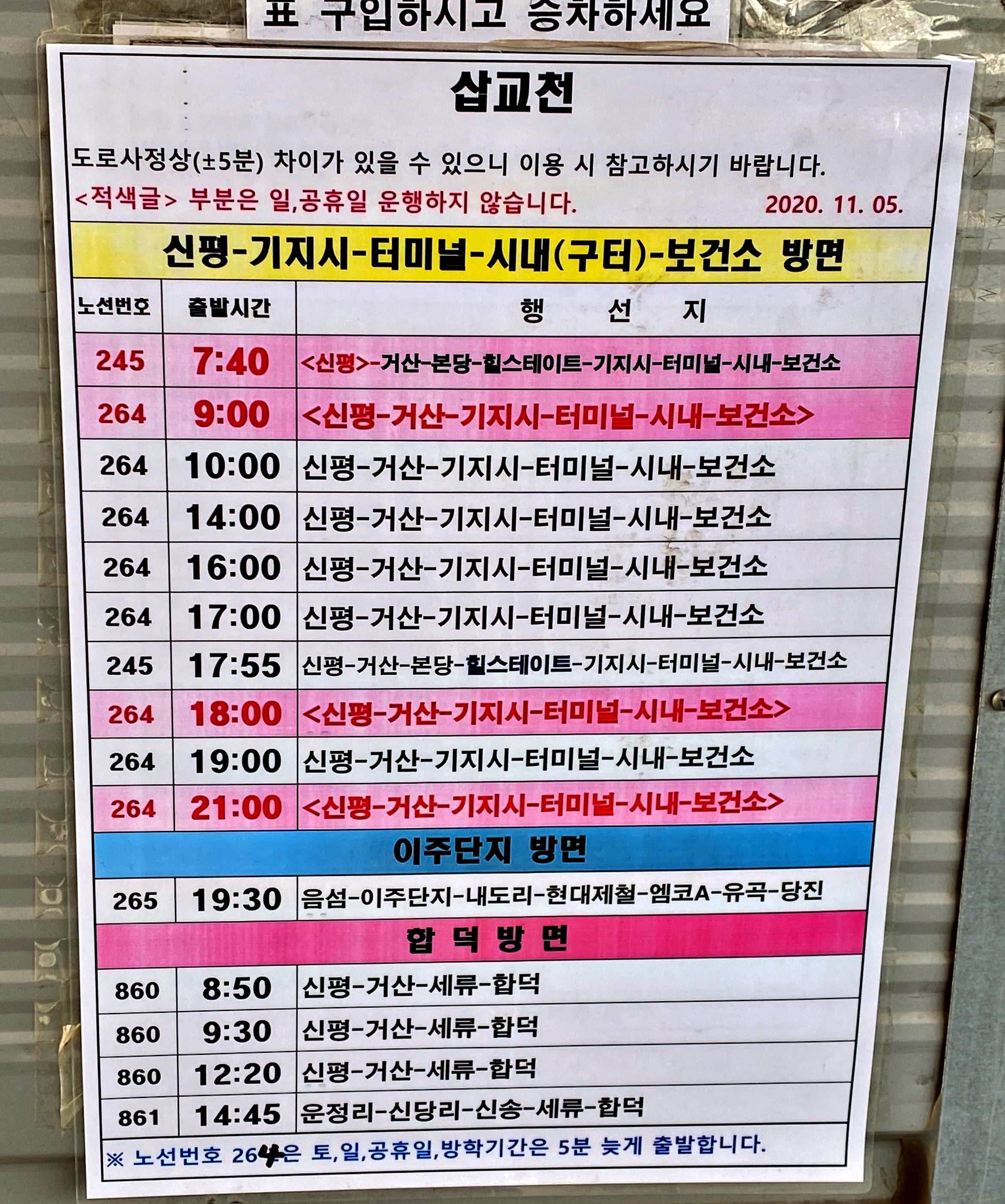 삽교호터미널(운정리) 시외버스 시간표 [2019년 2월 현재]
