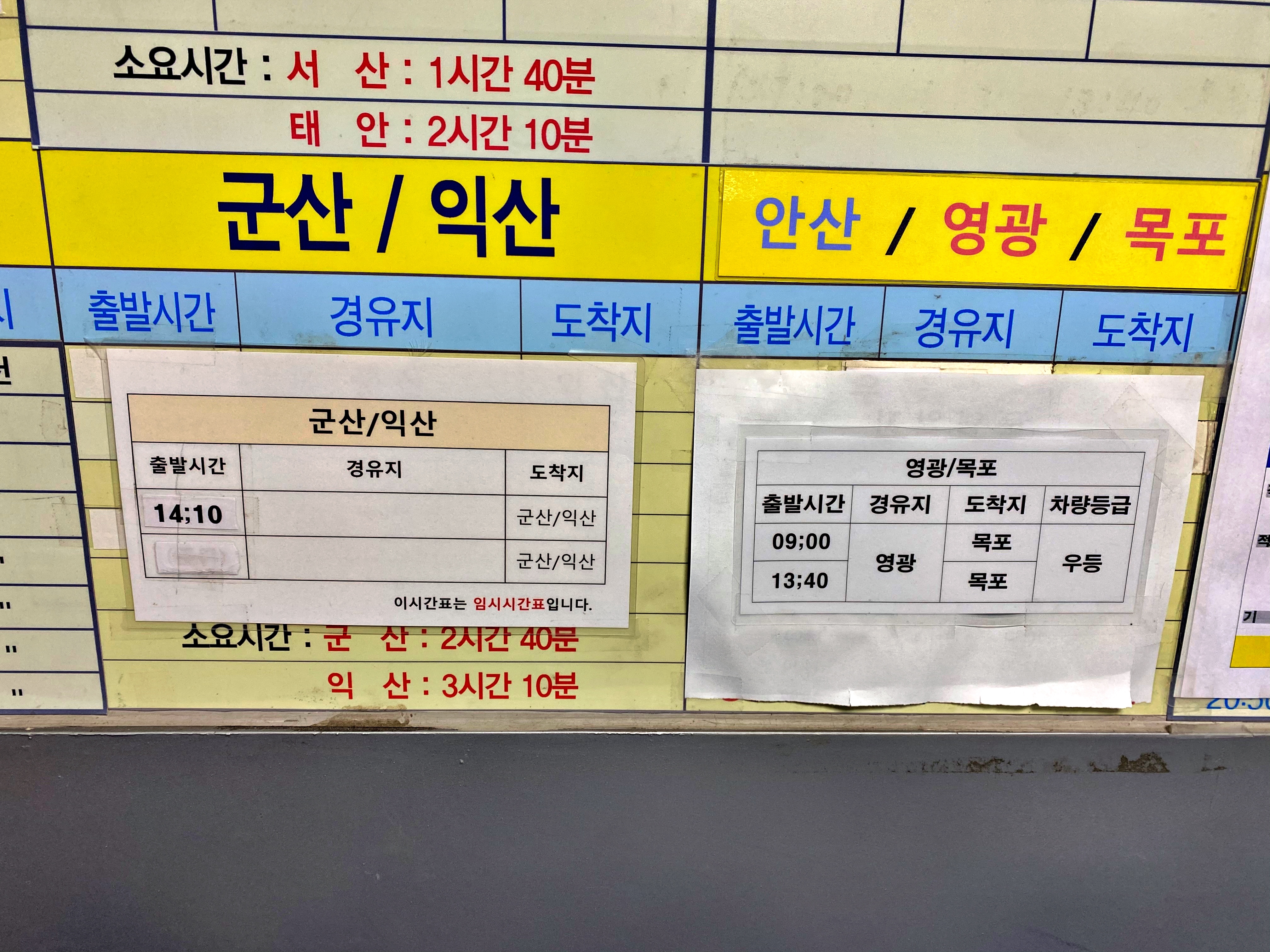 군산경유 익산행은 일 1회, 영광경유 목포행은 일 2회 운행됩니다.