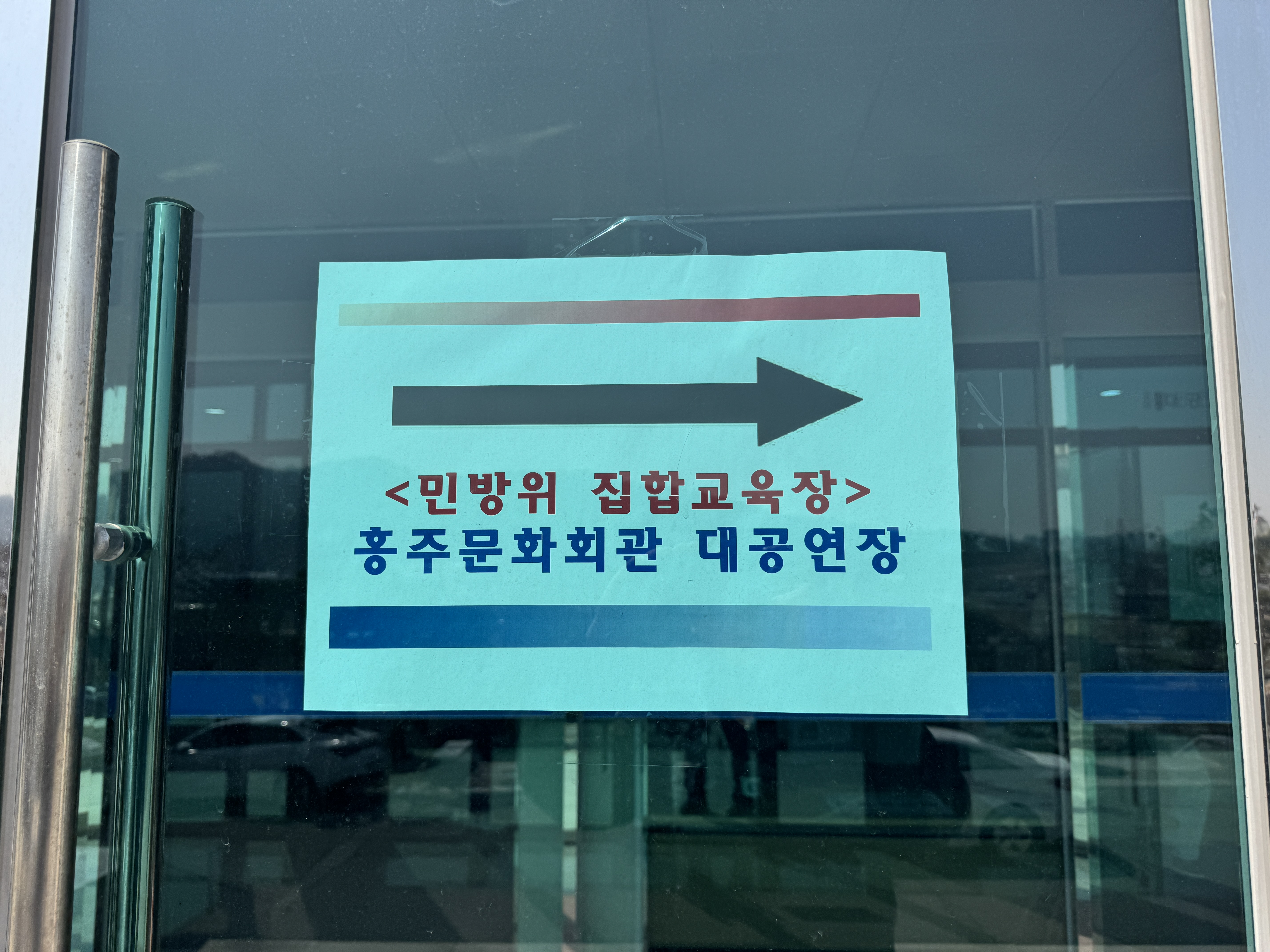 민방위 집합교육장이 차려진 홍주문화회관에 왔습니다.